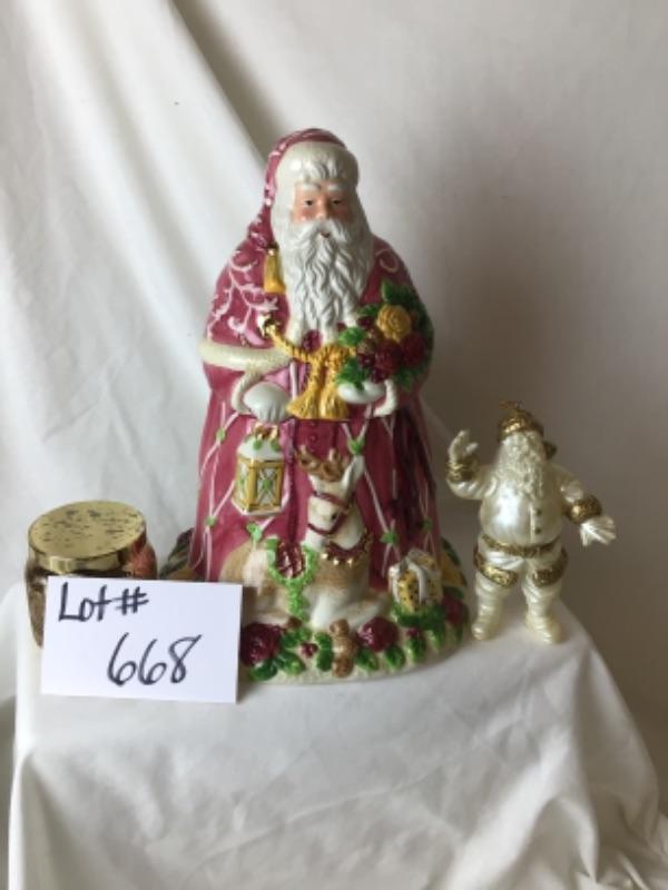 Royal Albert Old Country Roses Seasons of Colour Ceramic Santa Cookie Jar. Plastic Santa ornament and Spiced Vanilla Candle
