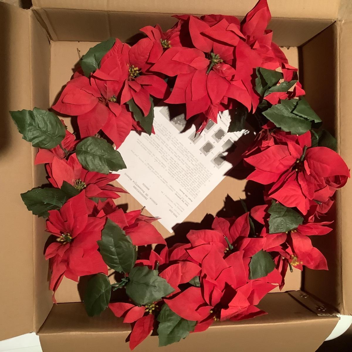 A697 Balsam Hill Lit Red Poinsettia Wreath