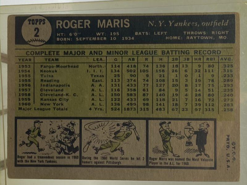 A70: Roger Maris 1961 Topps Baseball Card #2