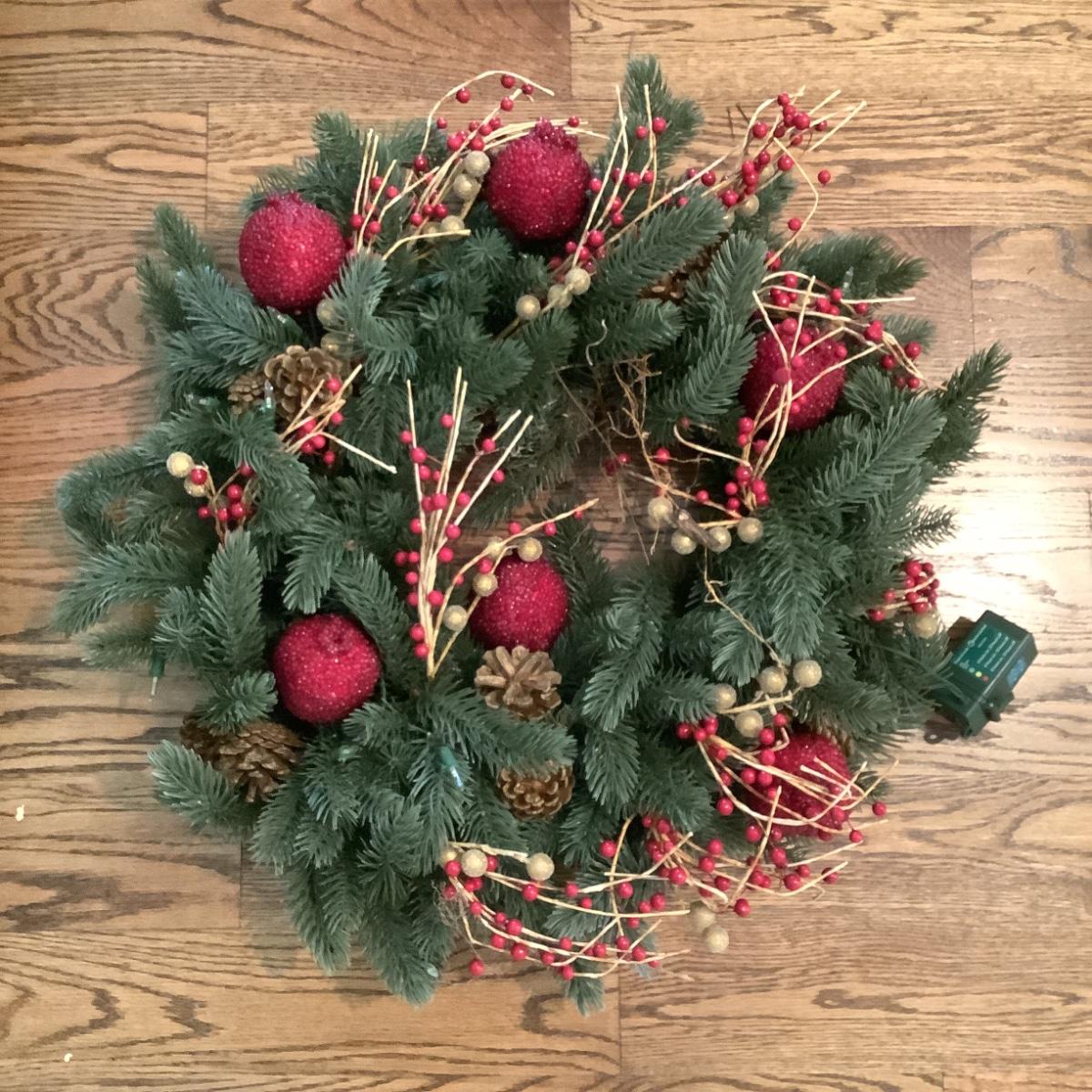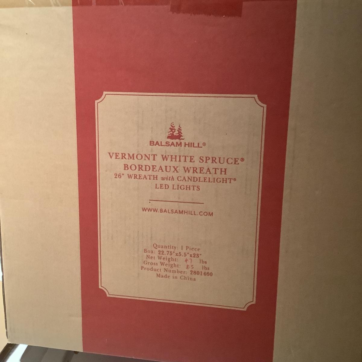 A700 Balsam Hill Vermont White Spruce Bordeaux Wreath with LED Candlelight