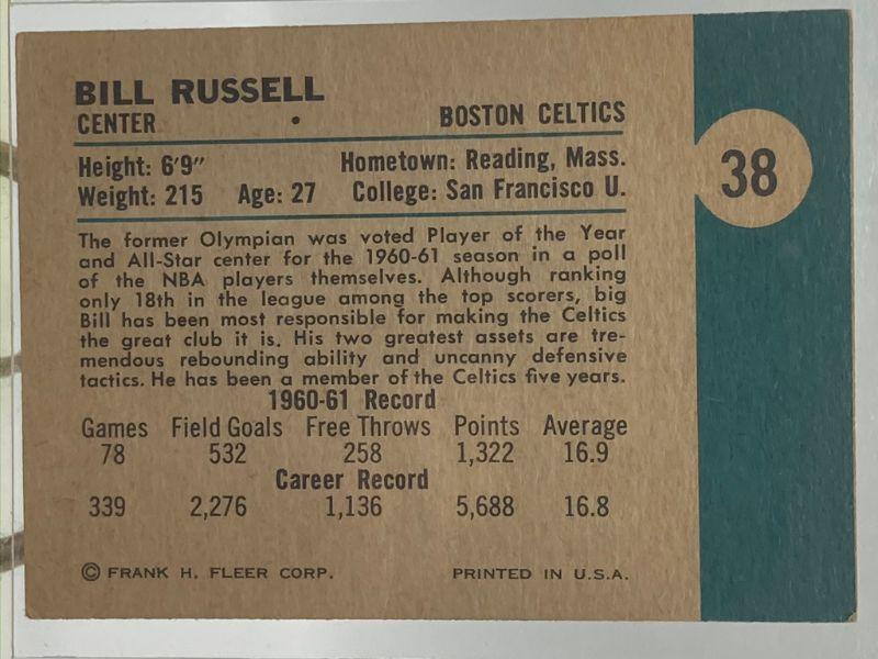 A73: Bill Russell 1961 Fleer Basketball Card #38