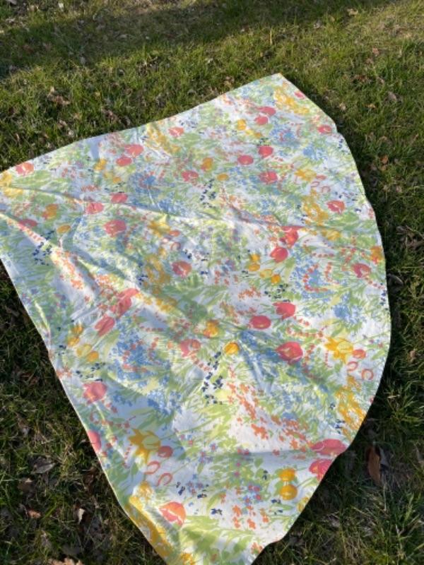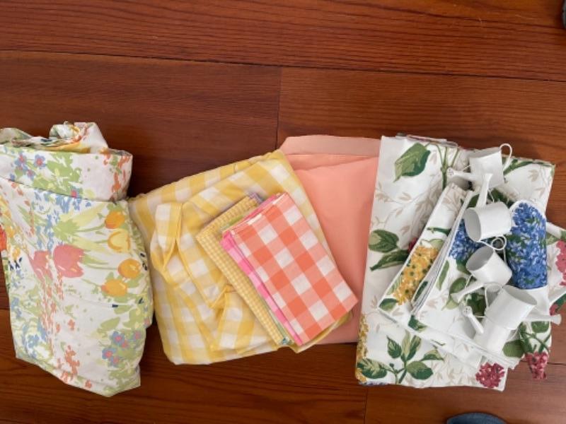 Set of 5’ round custom made floral tablecloth with gingham table cloths