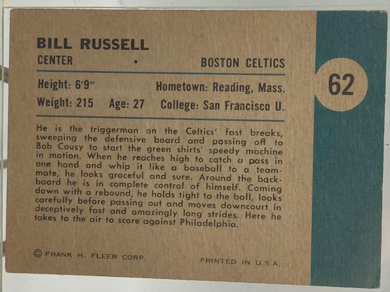 A74: Bill Russell 1961 Fleer Baseketball Card #62