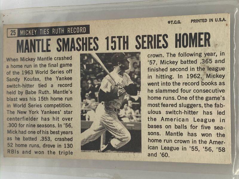 A75: Mickey Mantle 1964 Topps "Giant" Card #25