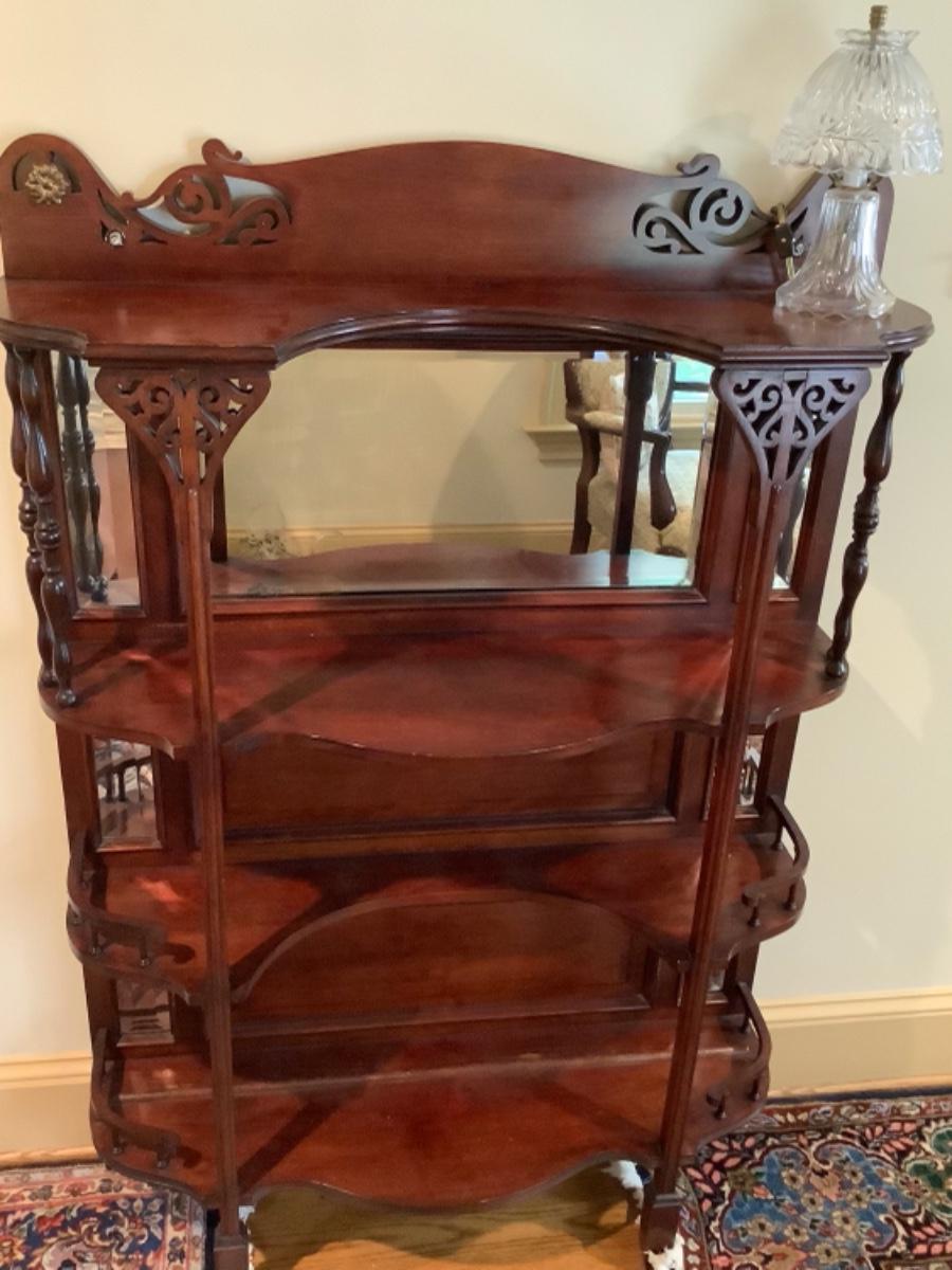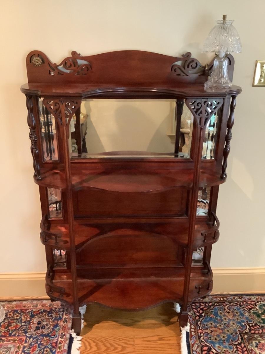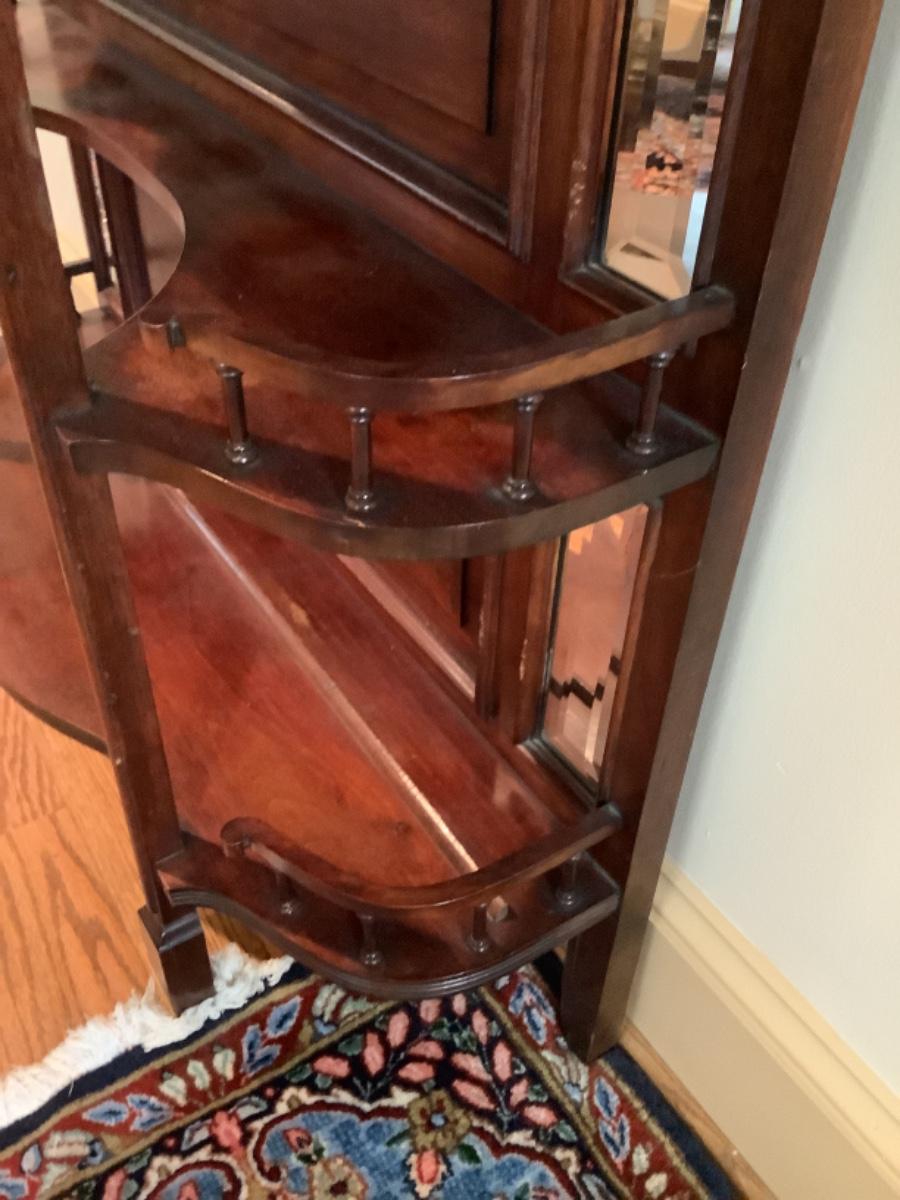 A766 Victorian Mahogany Beveled Mirror Back Eterege Shelf