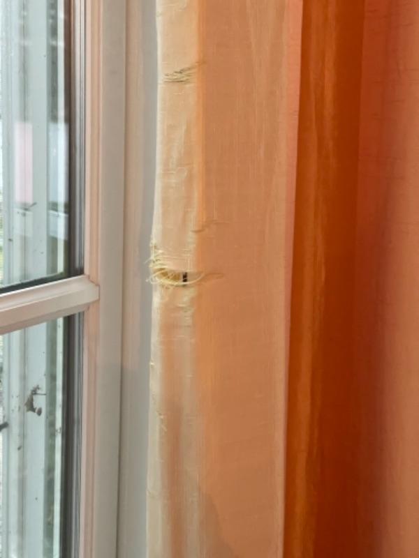 Set of four striped silk panels some fading and tearing on the edge, fully Lined with gold fringe