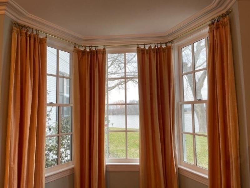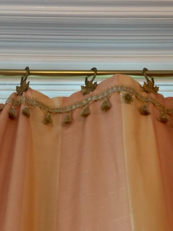 Set of four striped silk panels some fading and tearing on the edge, fully Lined with gold fringe