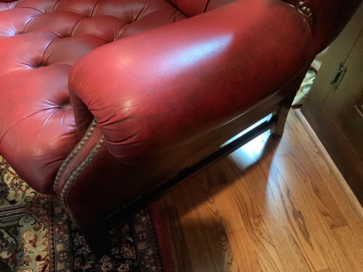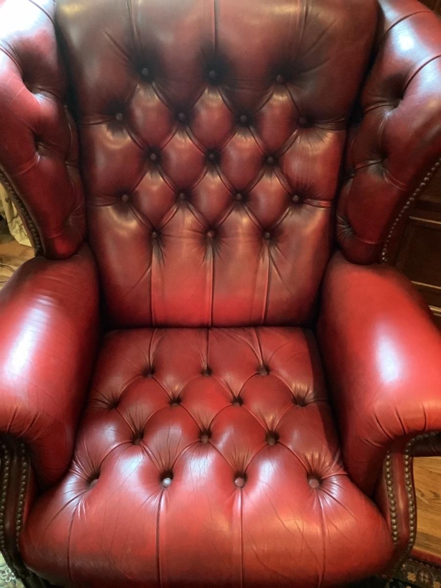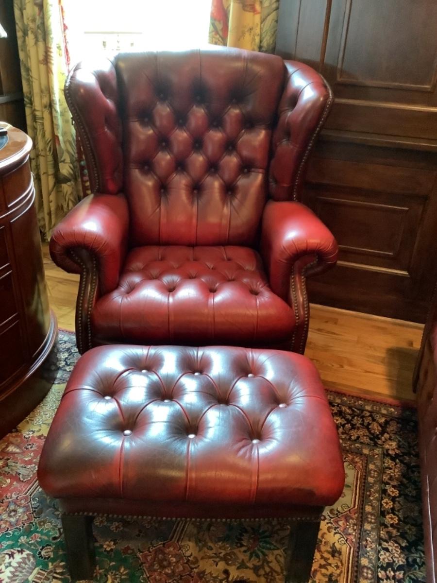 A788 Chesterfield Ox Blood Red Wingback Chair and Ottoman