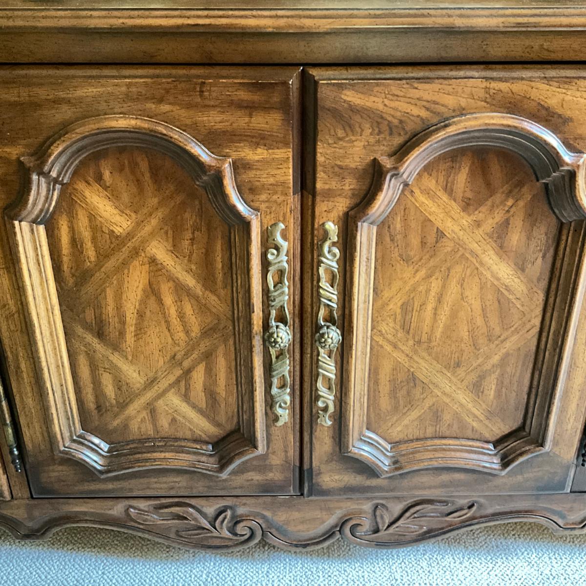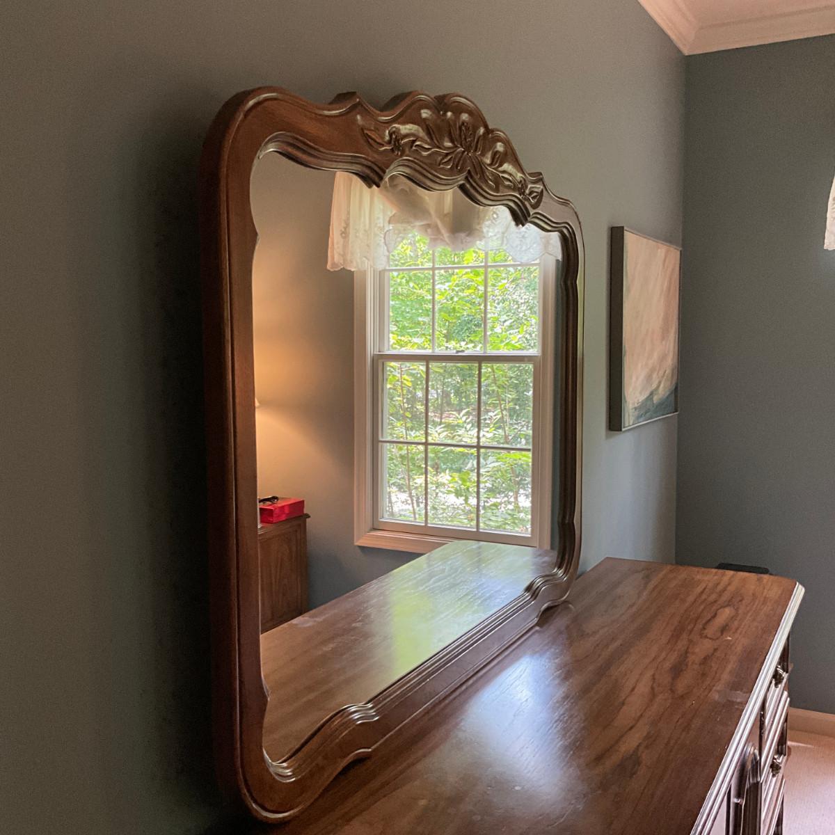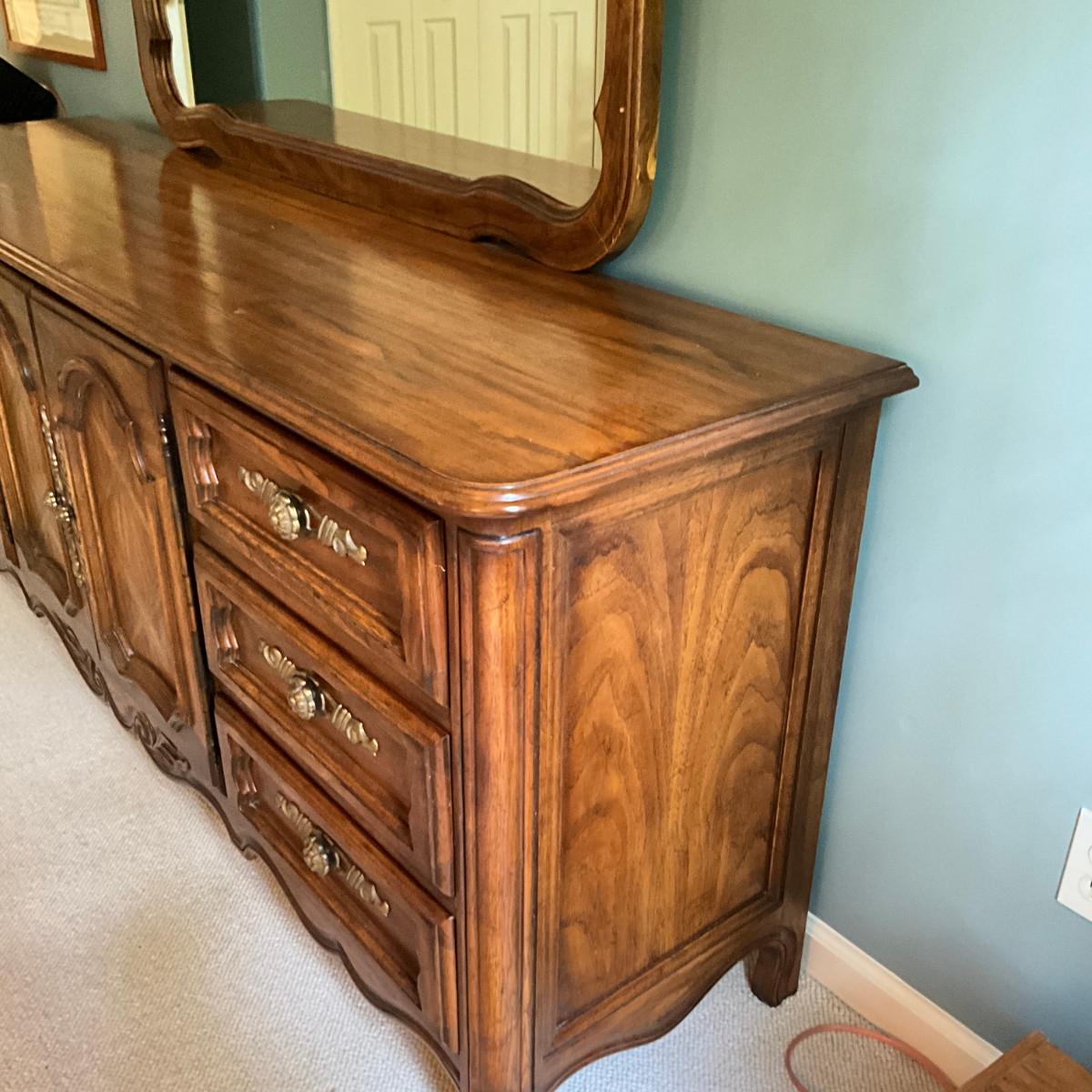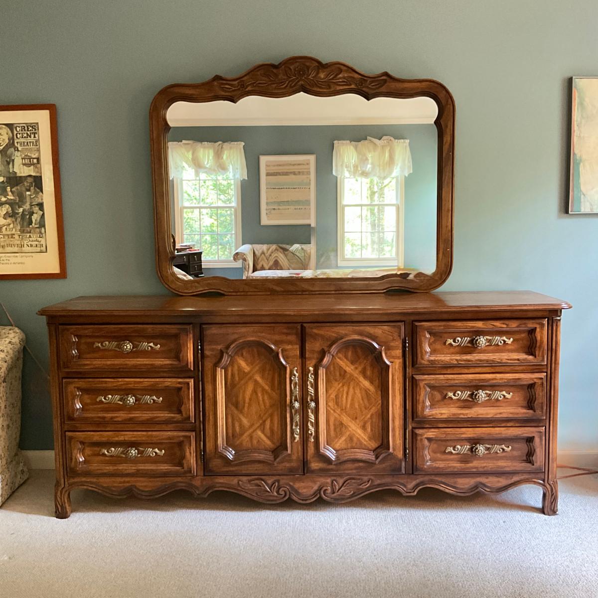 A793 Vintage Drexel Heritage Cabernet French Provincial Nine Drawer Dresser with Mirror