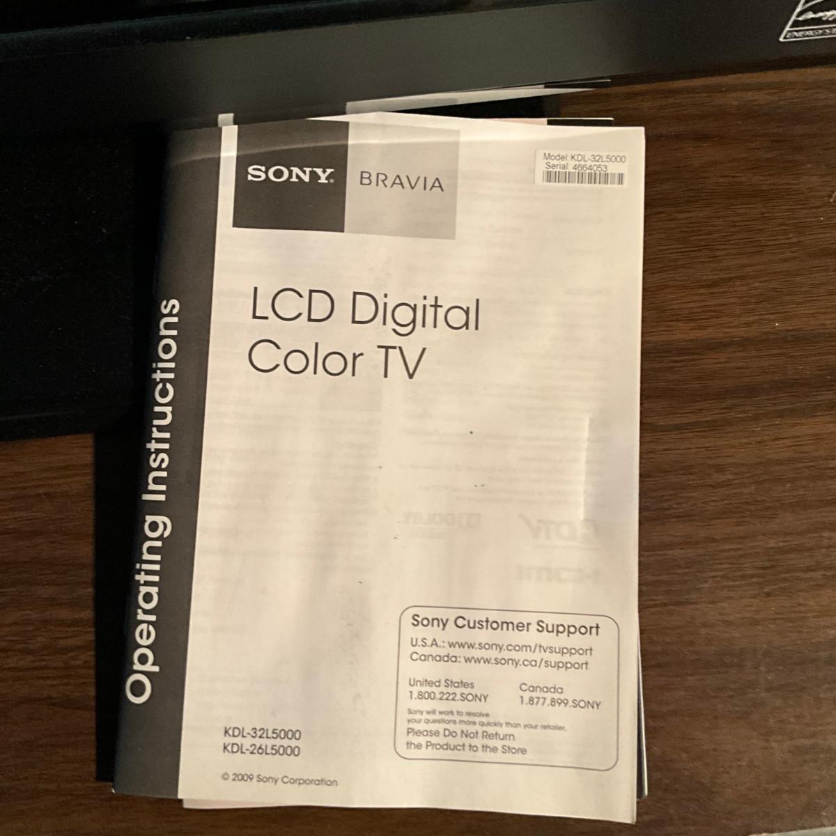 A808 Sony LCD Digital Color TV Model KDL-32L5000