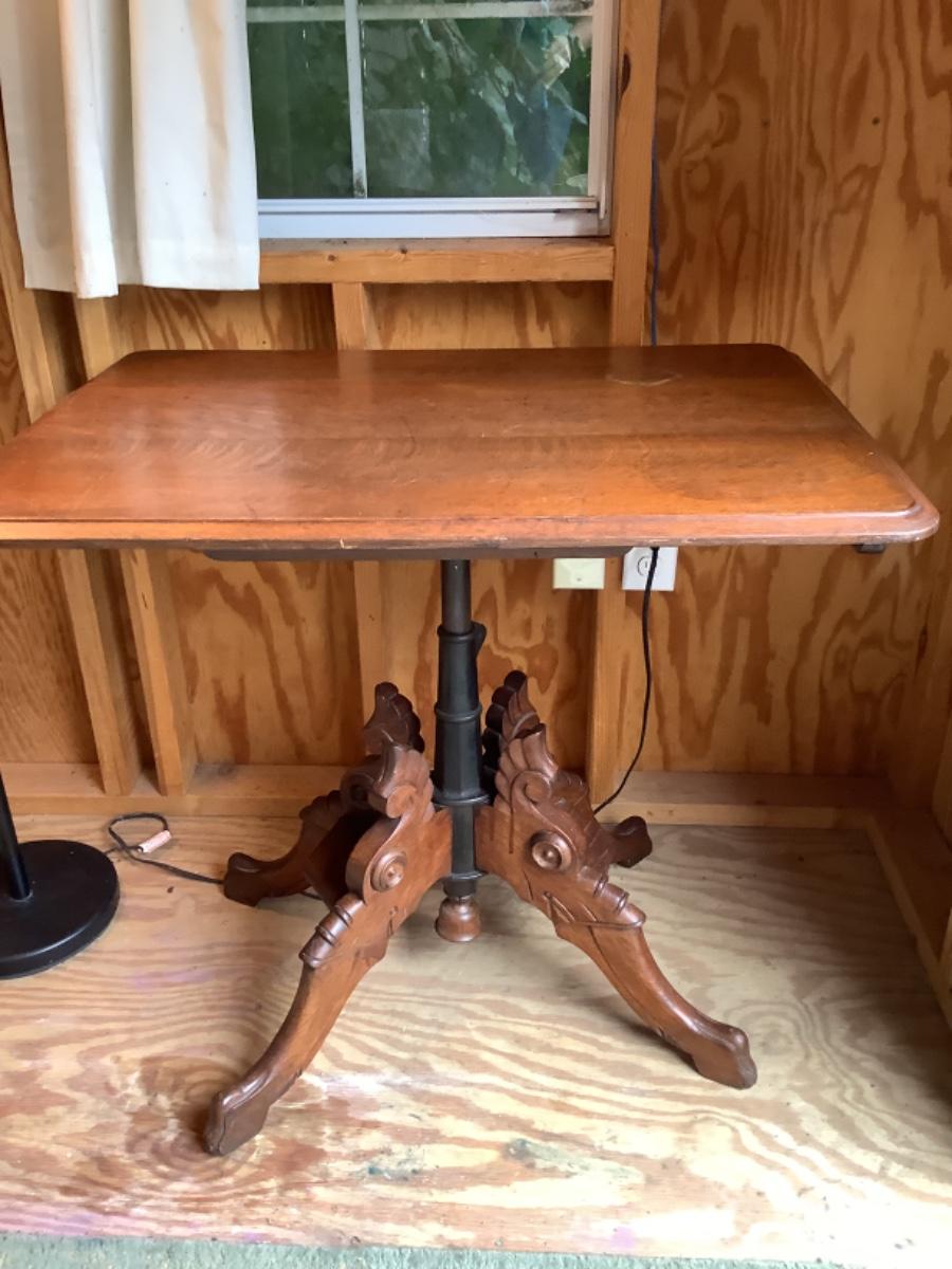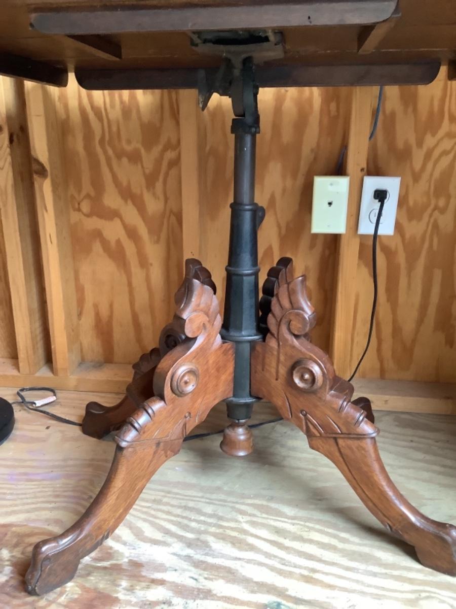 A866 Antique Victorian Adjustable Metal / Oak Pedestal Table
