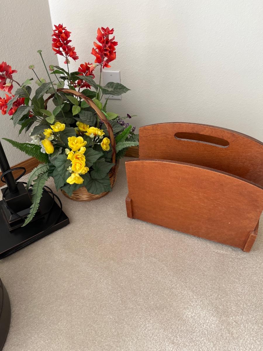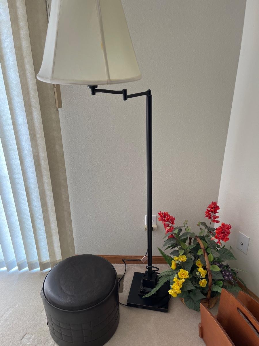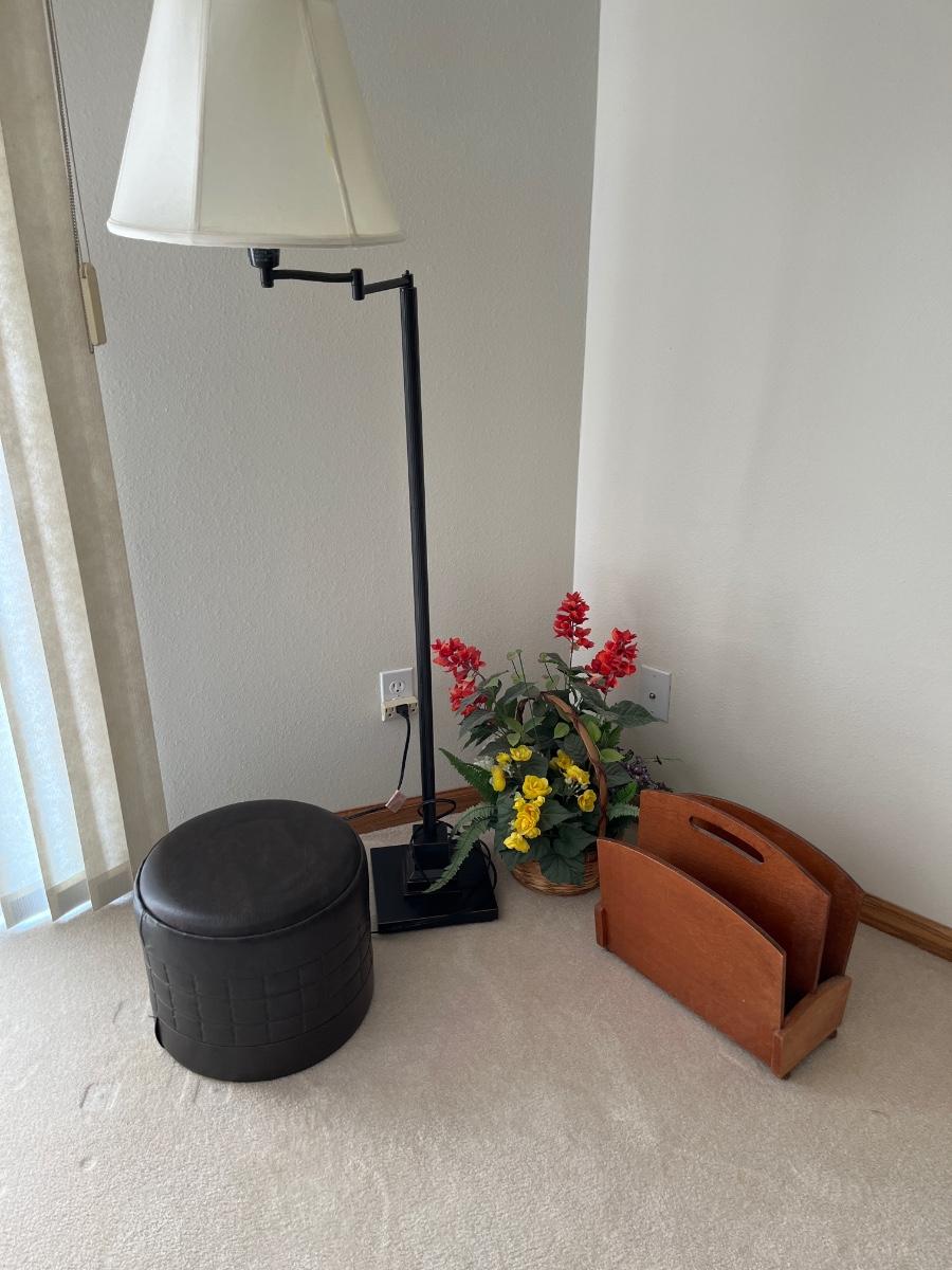 A9- Floor lamp, ottoman, flower bskt, magazine rack