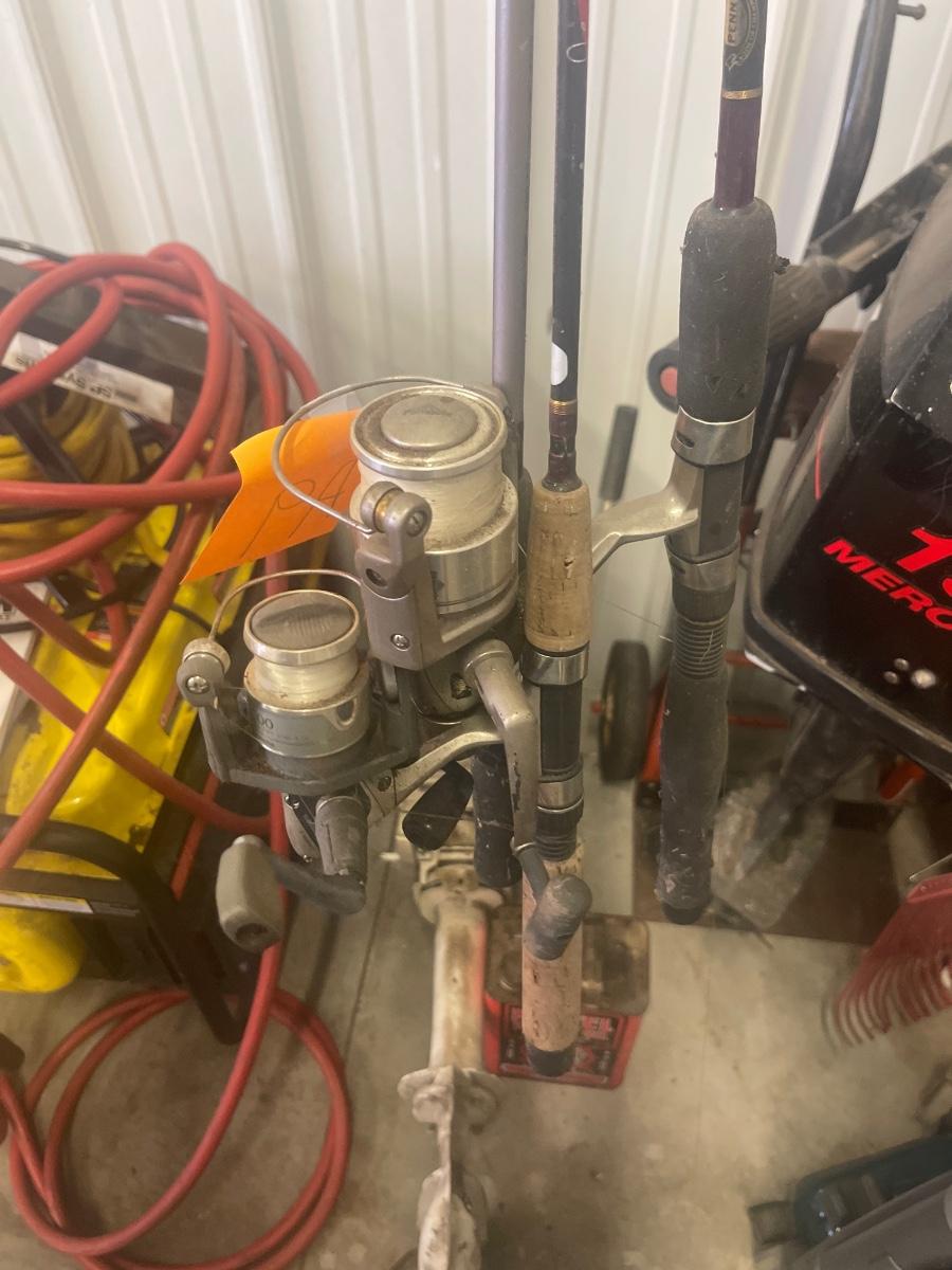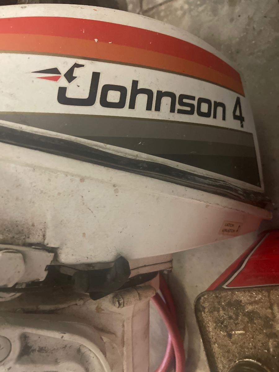 A9-Johnson 4 motor, Marvel Mystery Oil and 3 fishing rods