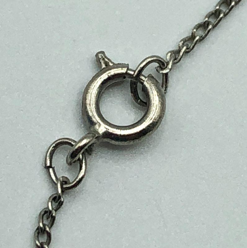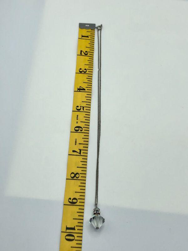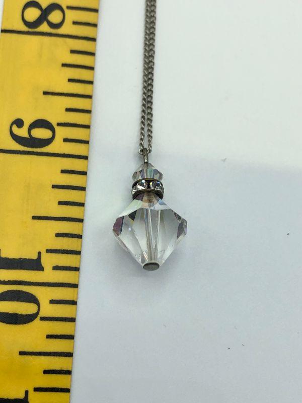 Simple Prism Bead Pendant on a silvertone chain. 1" pendant on a 9" chain. Chaim has a small smashed spot in three links.