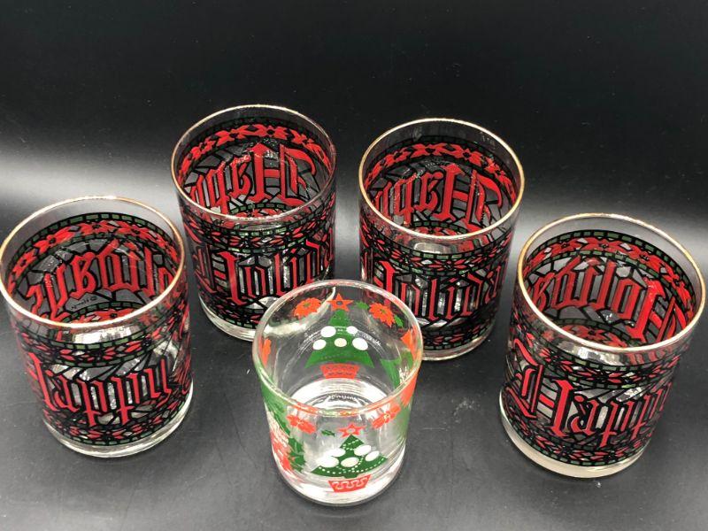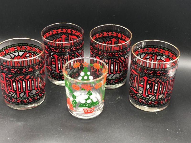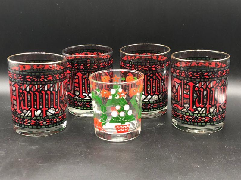 Vintage Christmas Holiday glasses, barware beverage glasses