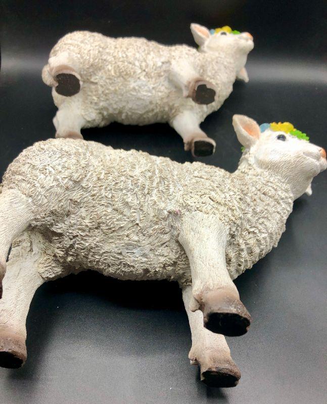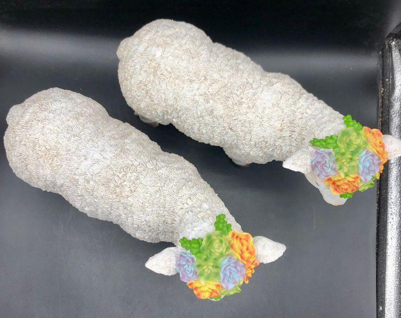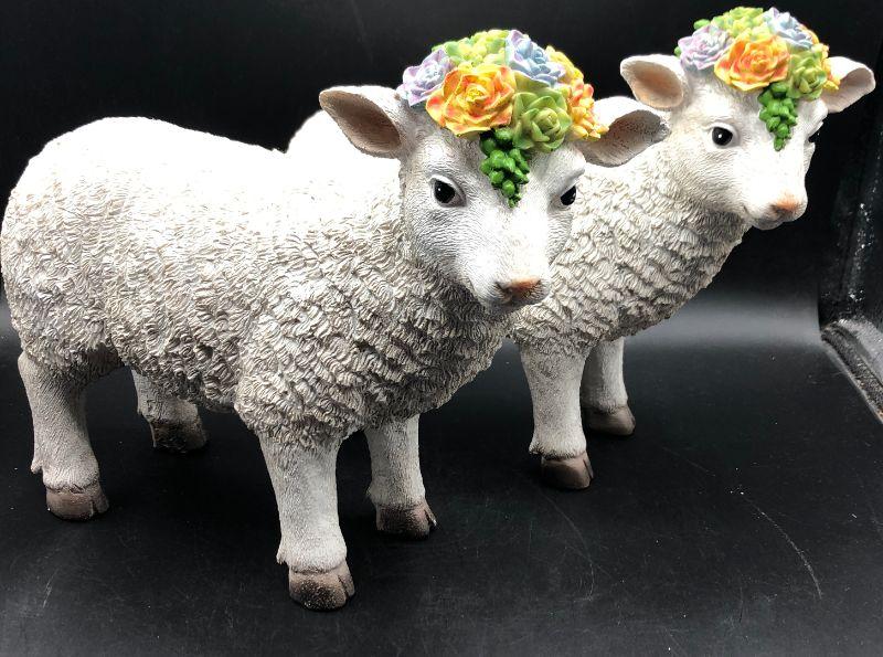 Set of 2 (set B) Resin Sheep Lamb with flowers on head figurine statue Easter Spring Decor