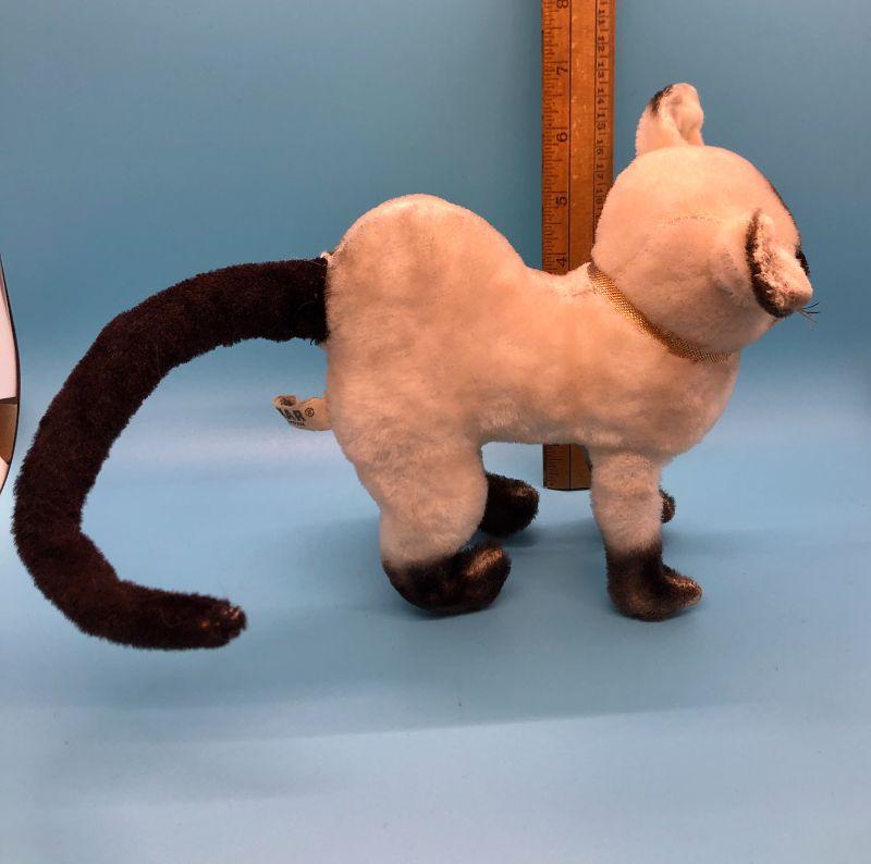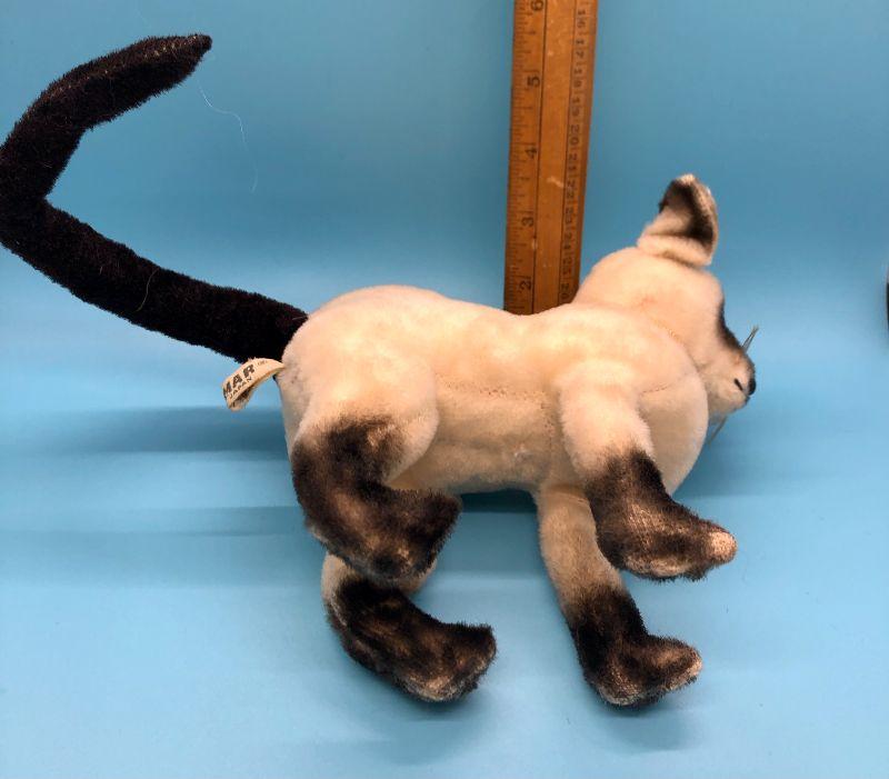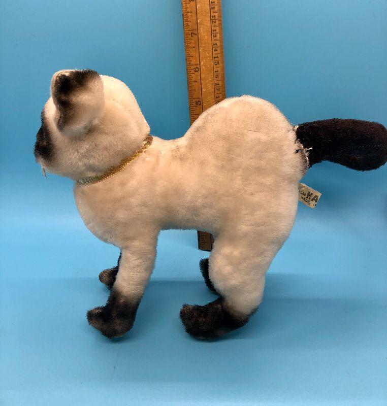 Vintage Siamese cat plush from Kamar. Made in Japan. Hunched back and long tail. No holes.