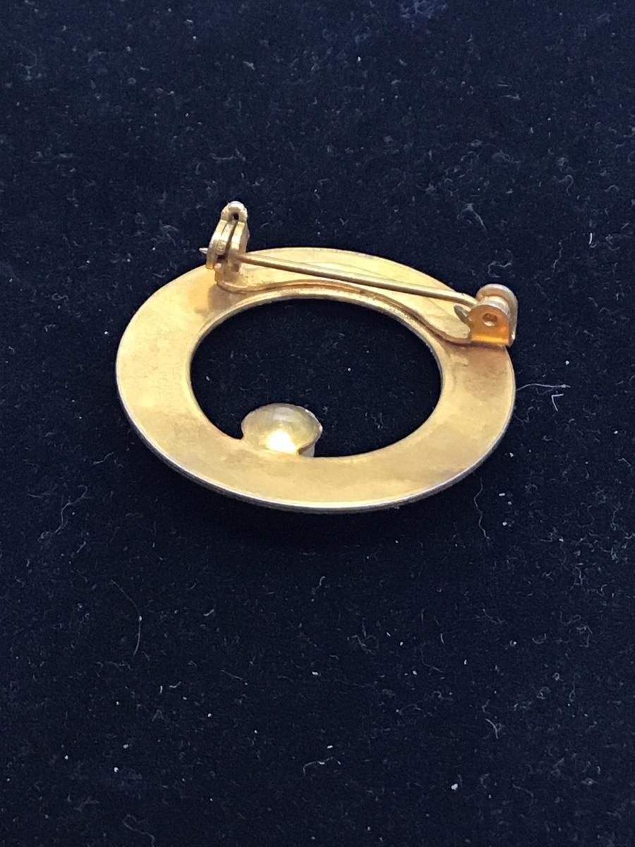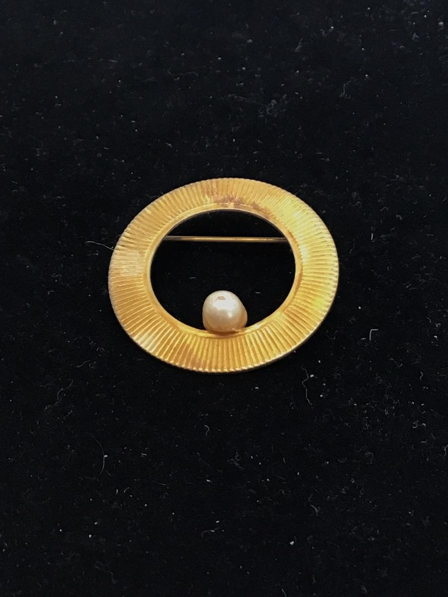 AA antique gold brushed circle pearl imitation bead brooch