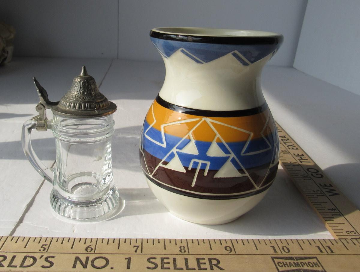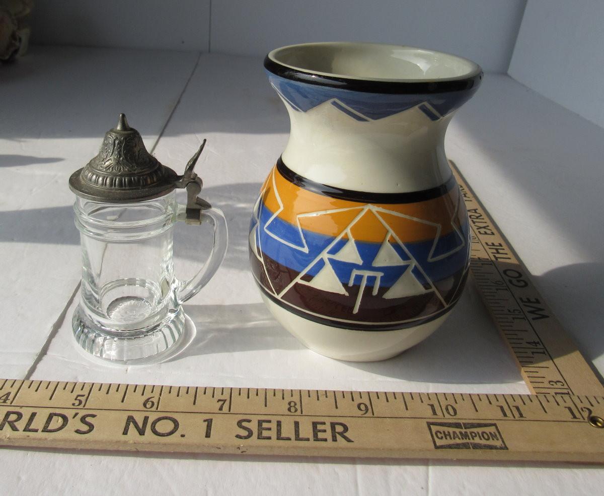 Miniature West German Glass Stein, Rapid City SD Indian Pottery Vase