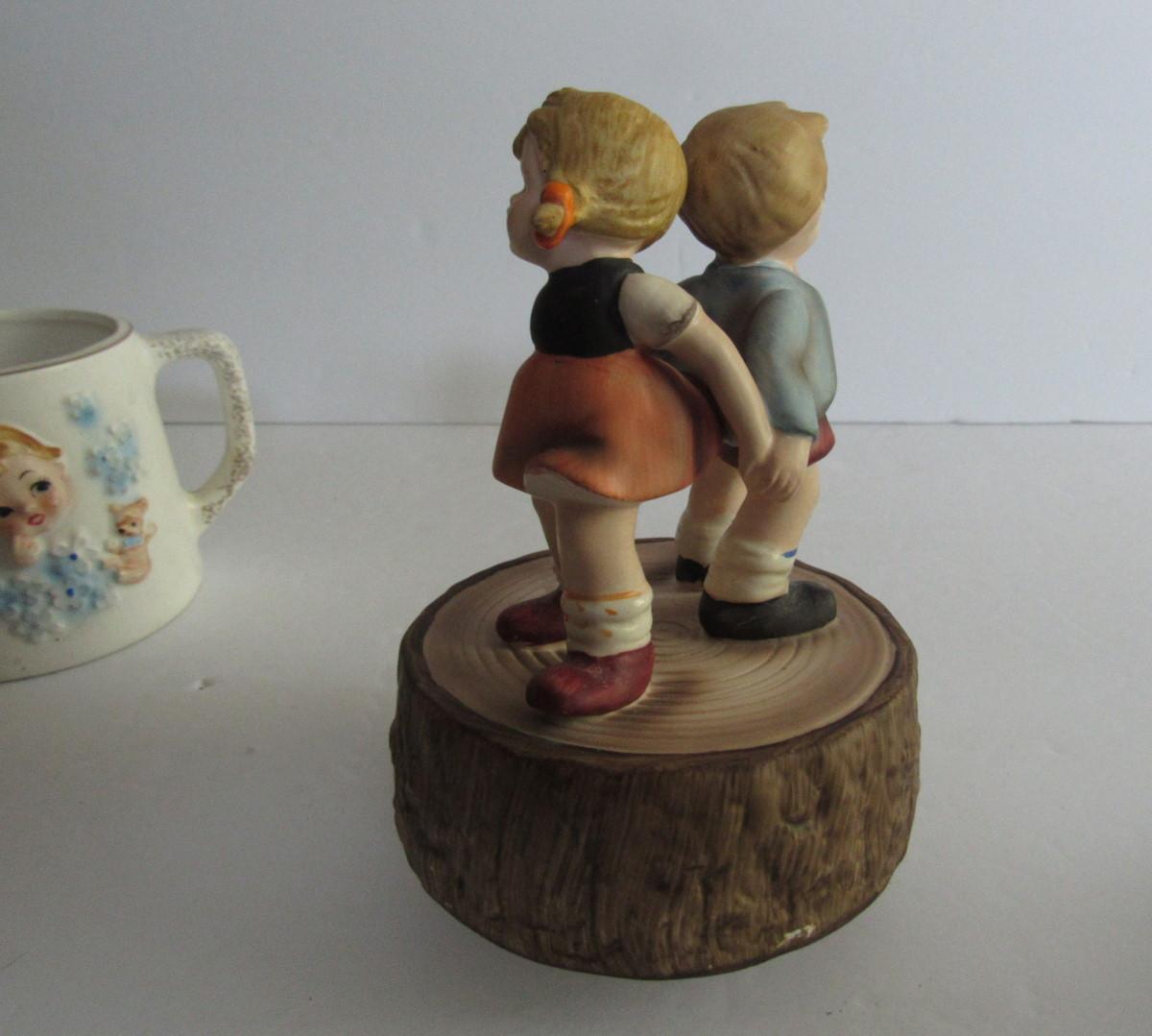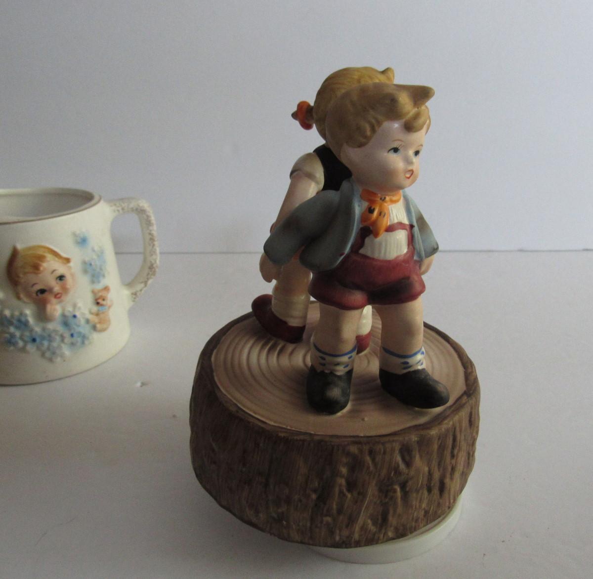 Some are dirty and need cleaning. I don't see any chips or cracks. The music box works but is very slow. Shipping is available at actual shipping cost plus $5.00 handling fee per box for supplies/labor. See our terms for details. All sales are final. Condition notes may not be all inclusive, we may miss some issues as most vintage items are not in mint condition and have some degree of wear, paint loss, etc, but we always try to note obvious damage.