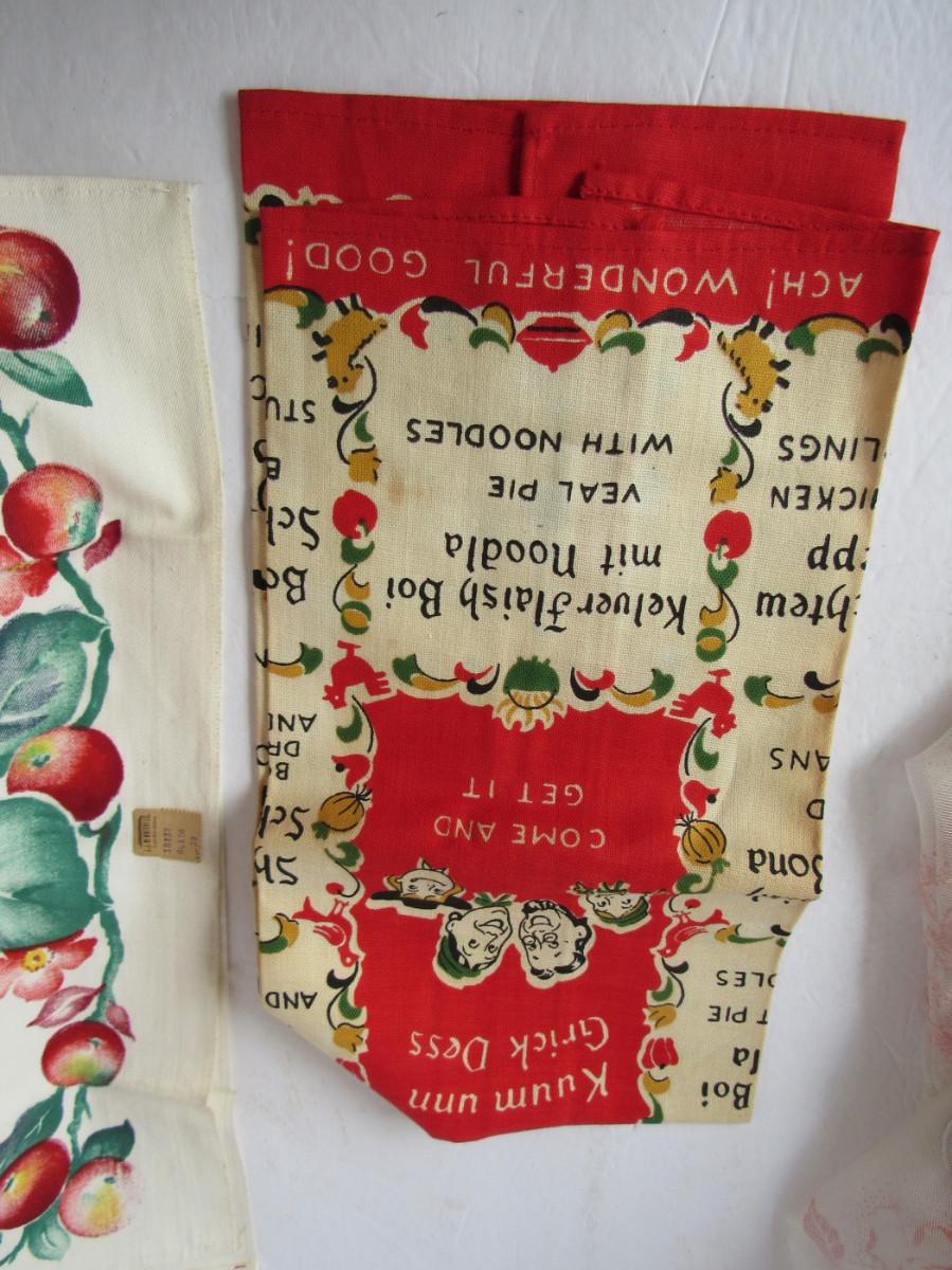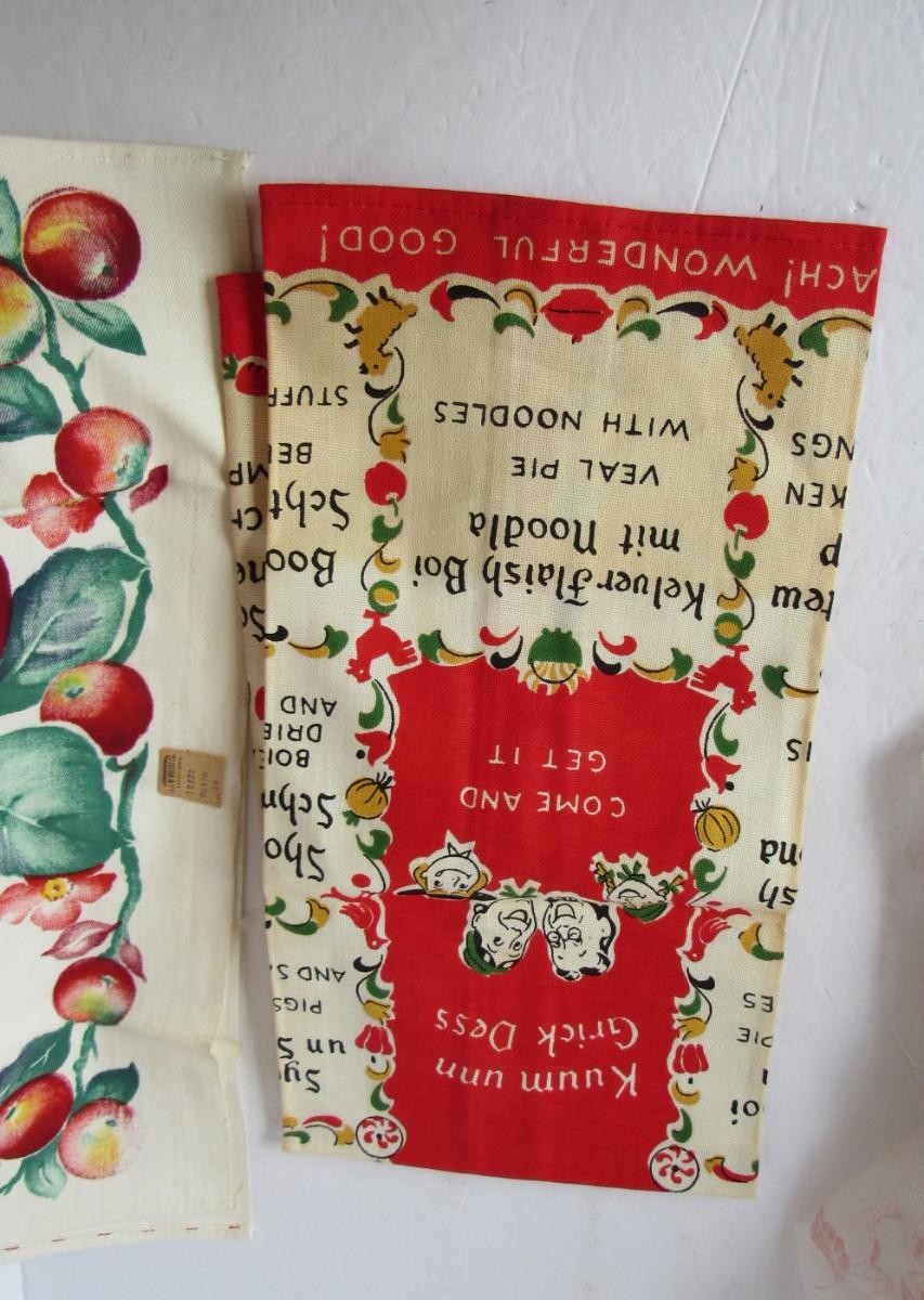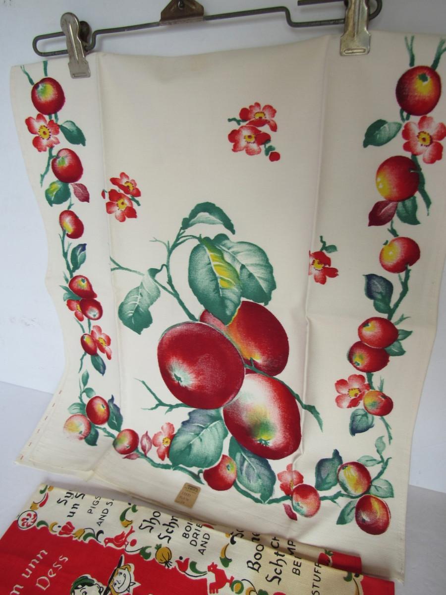 The apples towel is in super nice unused condition with original price tag still attached. The other towel has staining, I didn't try to clean it, unsure if it will clean out or not. Shipping is available at actual shipping cost plus $5.00 handling fee per box for supplies/labor. See our terms for details. All sales are final. Condition notes may not be all inclusive, we may miss some issues as most vintage items are not in mint condition and have some degree of wear, paint loss, etc, but we always try to note obvious damage.
