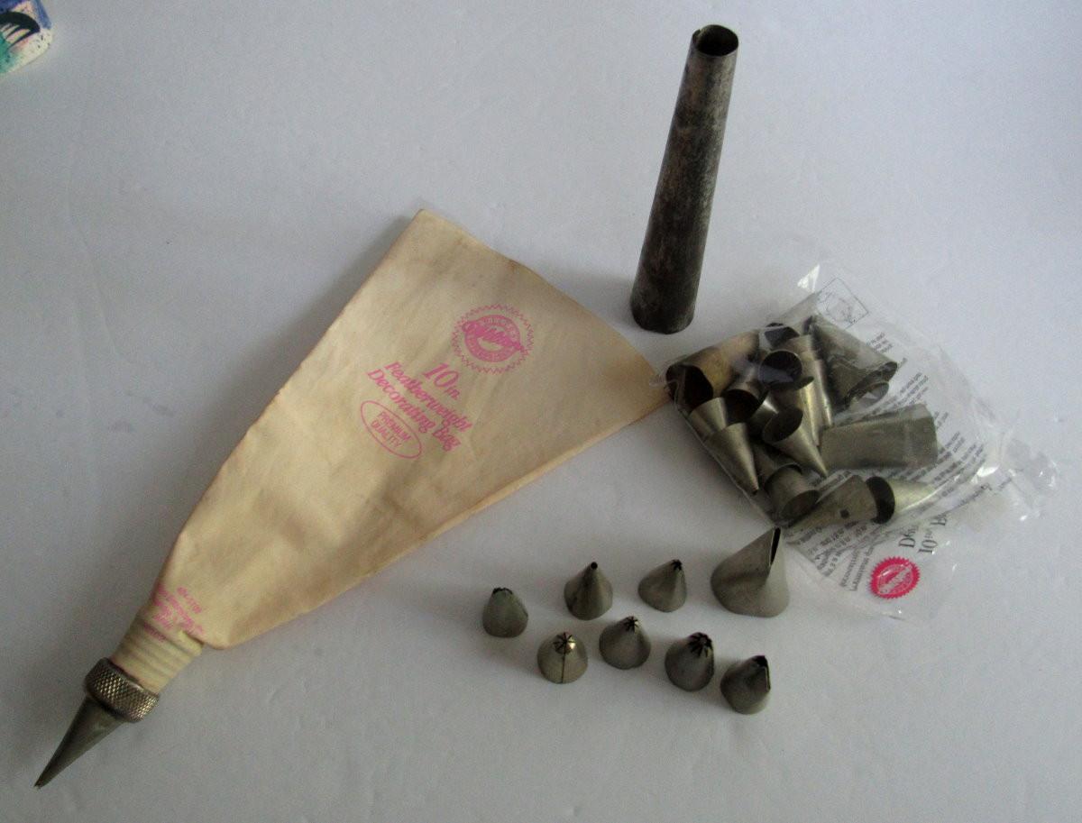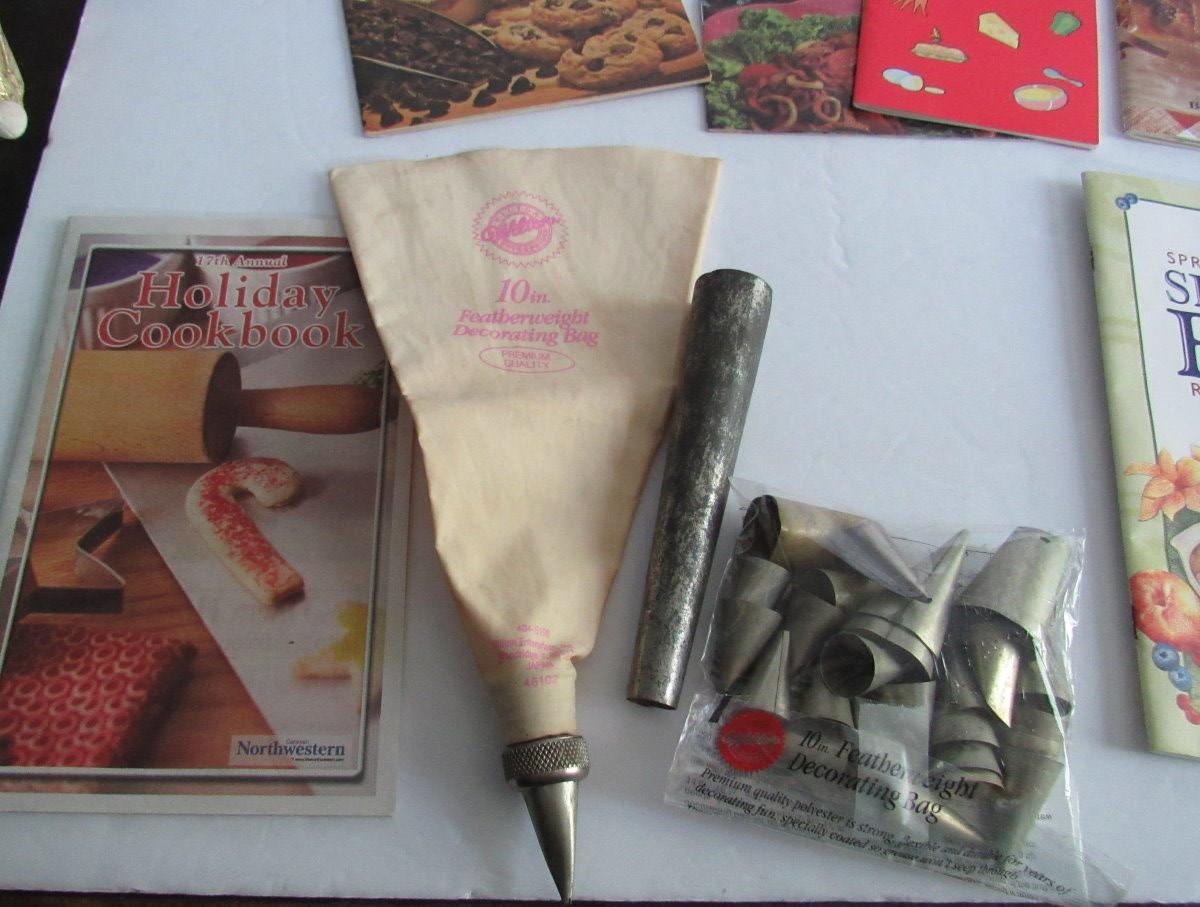 Older Wilton Cake Decorating Pastry Bag With Tons of Metal Tips and Cook Booklets