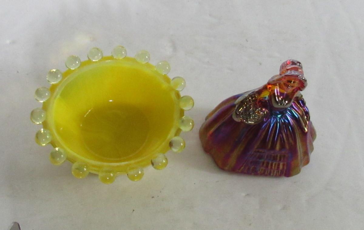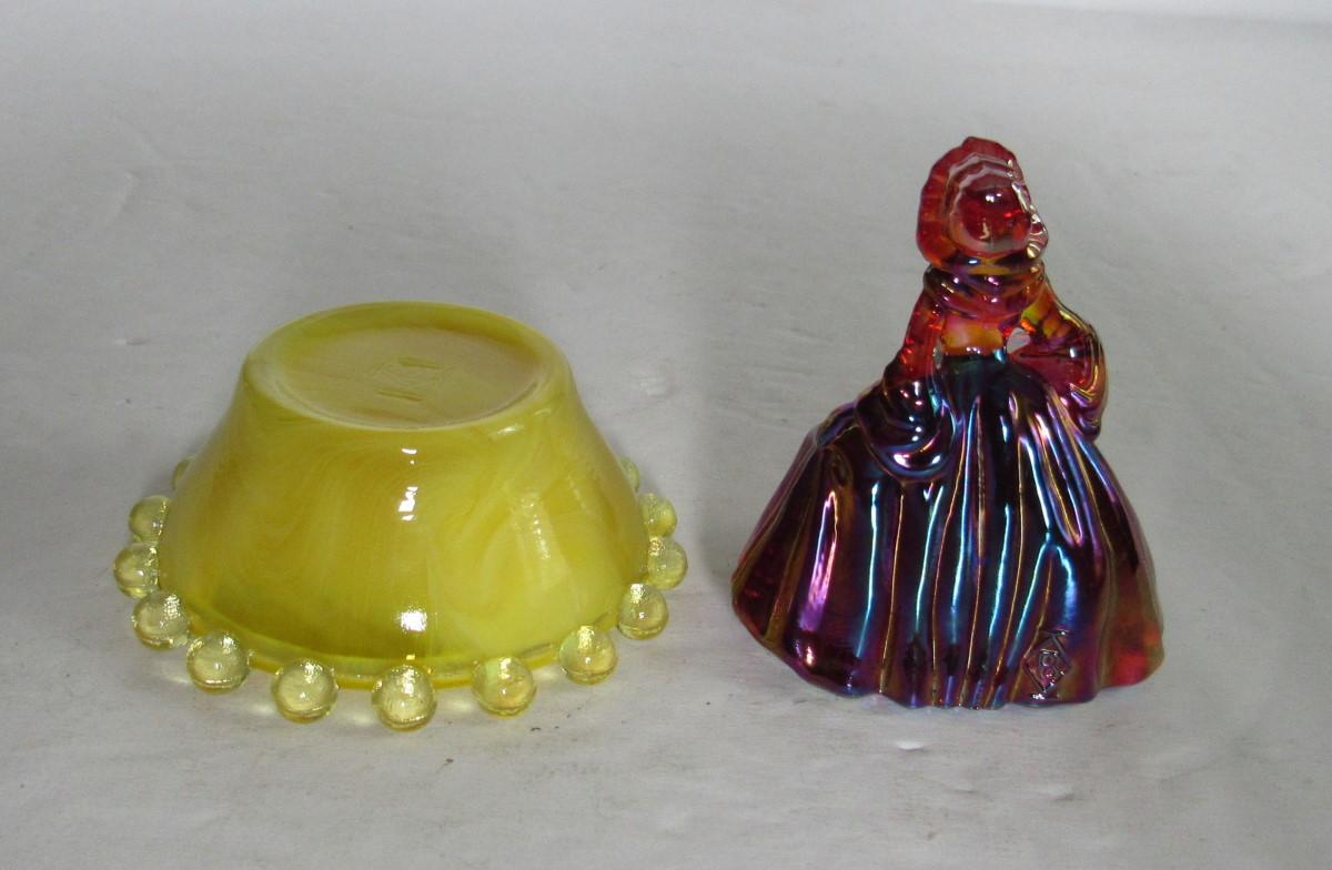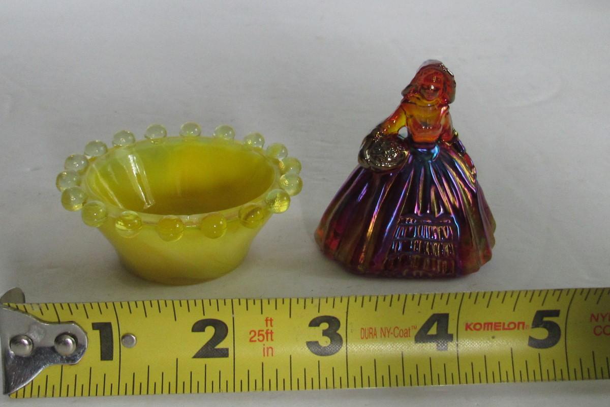 Boyd Glass Candlewick Open Salt and Carnival Glass Doll
