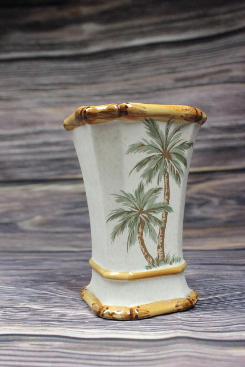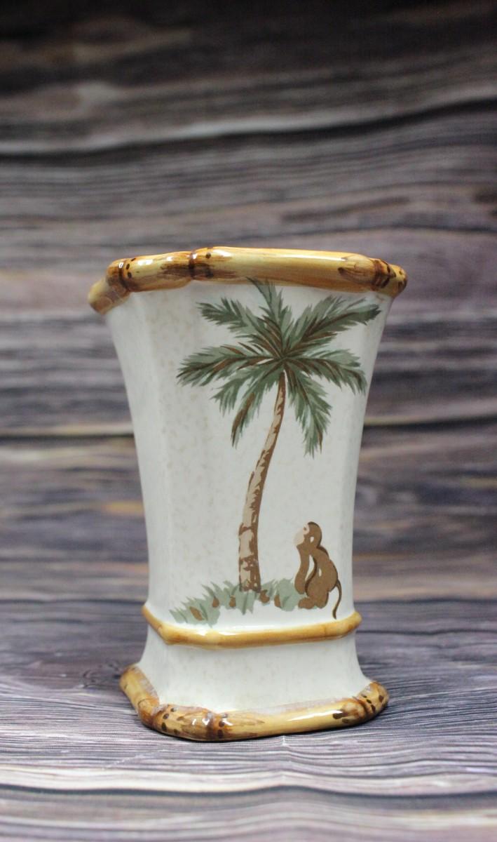 Spring Maid Ceramic Tropical Palm Tree Monkey Toothbrush Holder