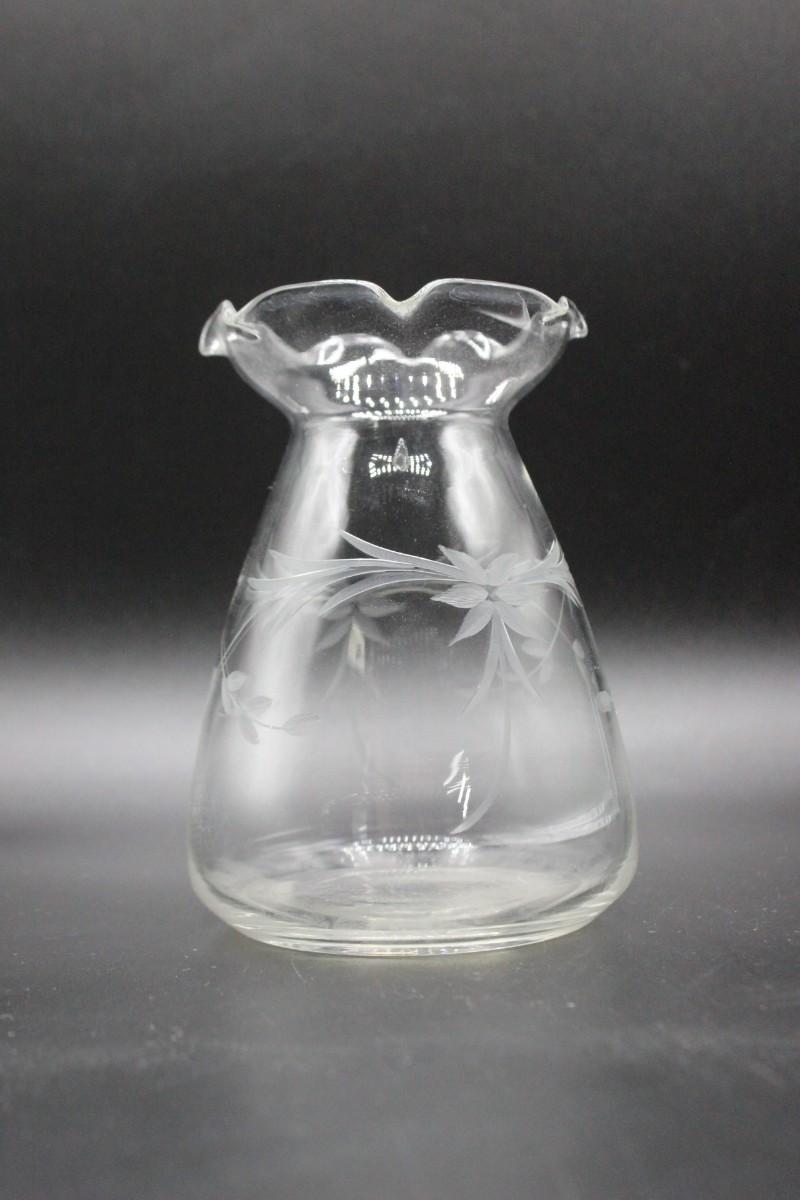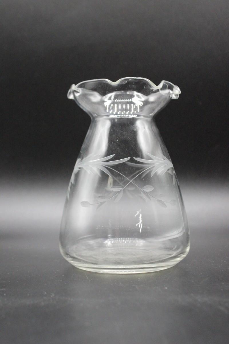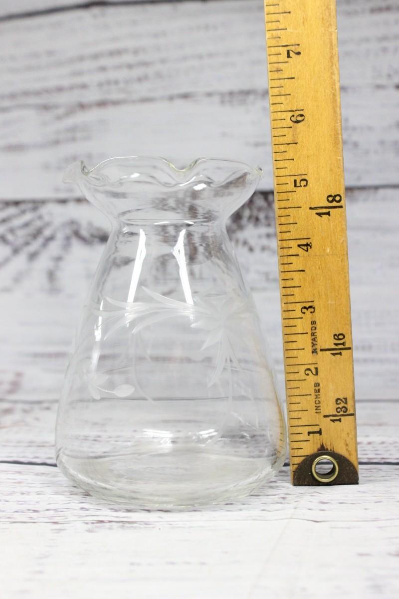 Small Etched Ruffle Edge Vase. Good condition. 5" size.