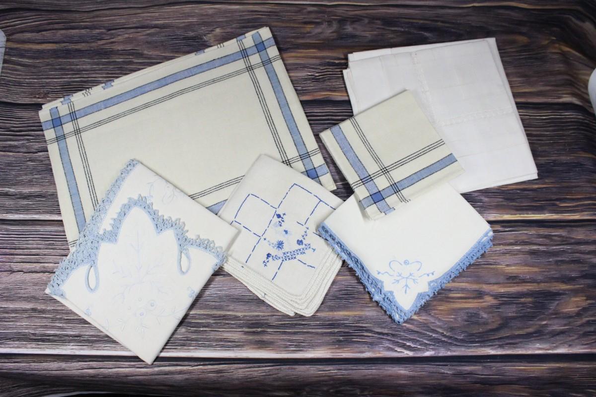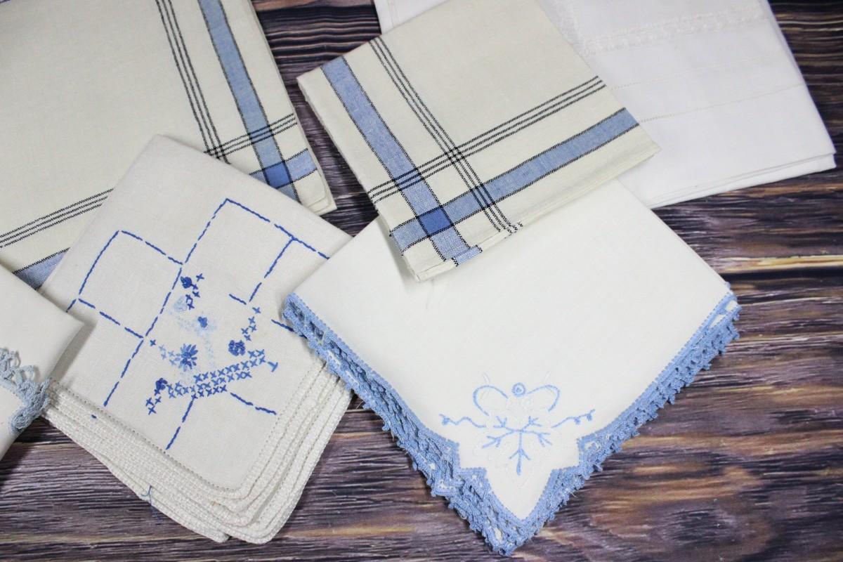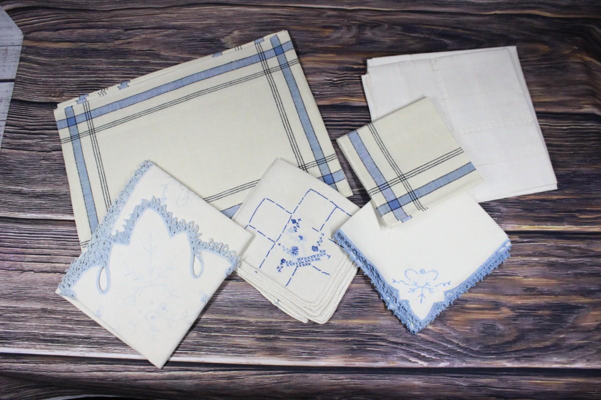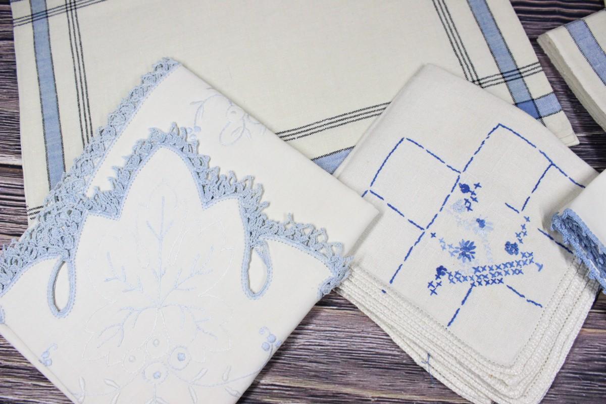 Vintage Blue Accent Table Linens