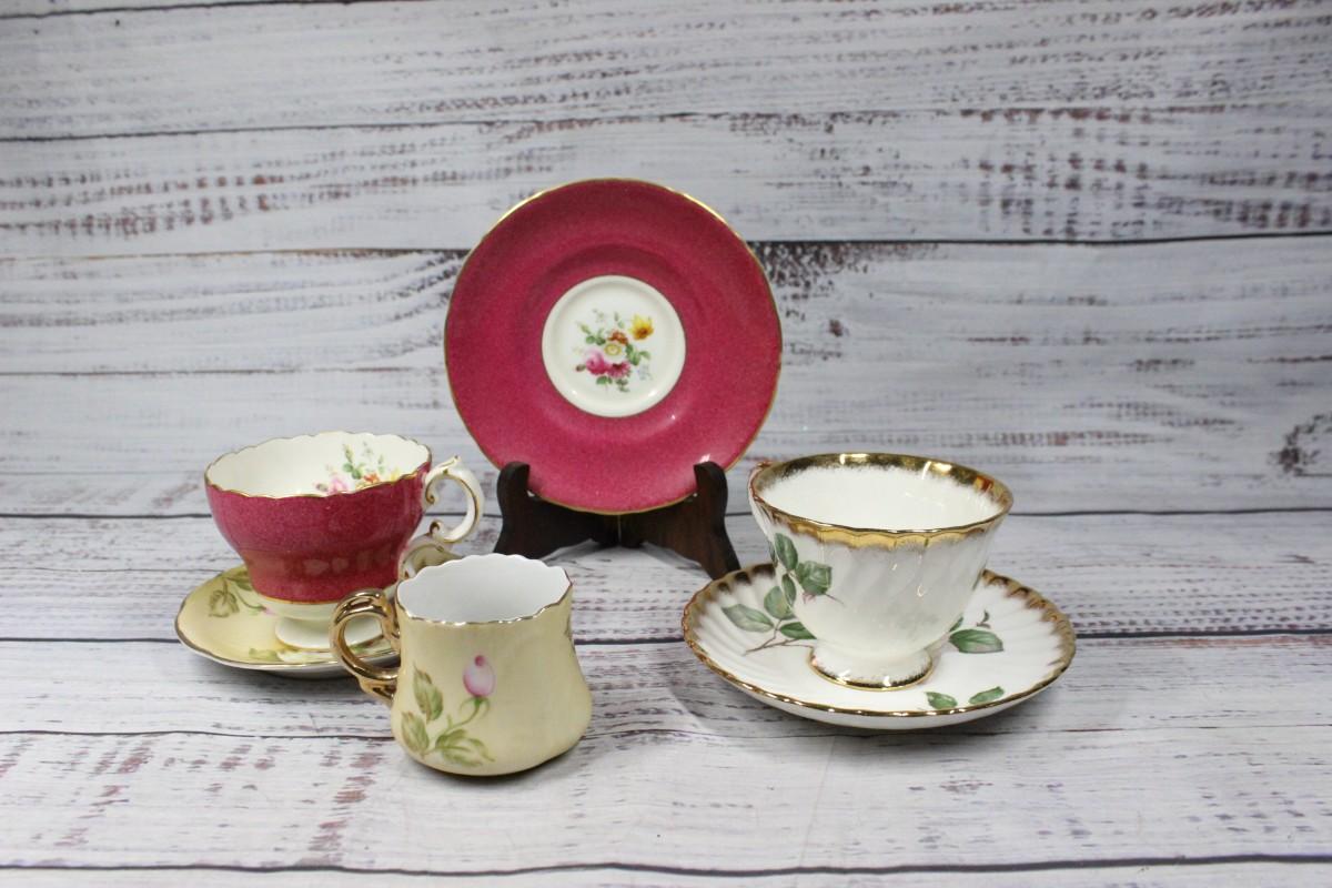 Vintage Leaf Teacup Set, there's no cracks or chips to any of the teaware. See pictures for more details and for sizing.