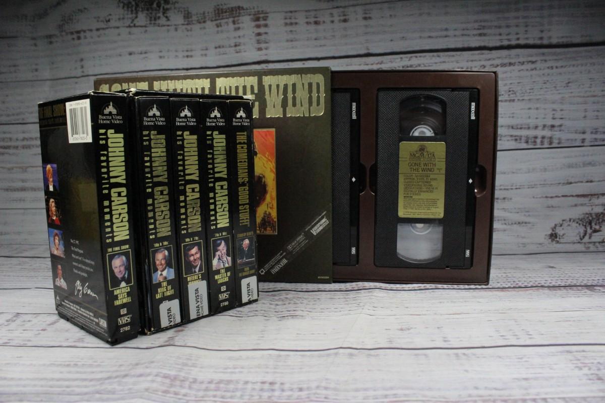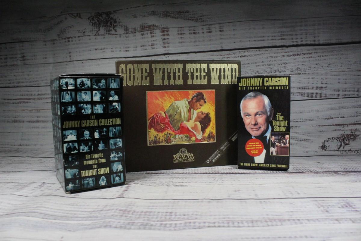 Johnny Carson & Gone with the Wind VHS Lot, there's no significant damage to any of the boxes or the tapes and is in good vintage condition. VHS tapes have no been tested.