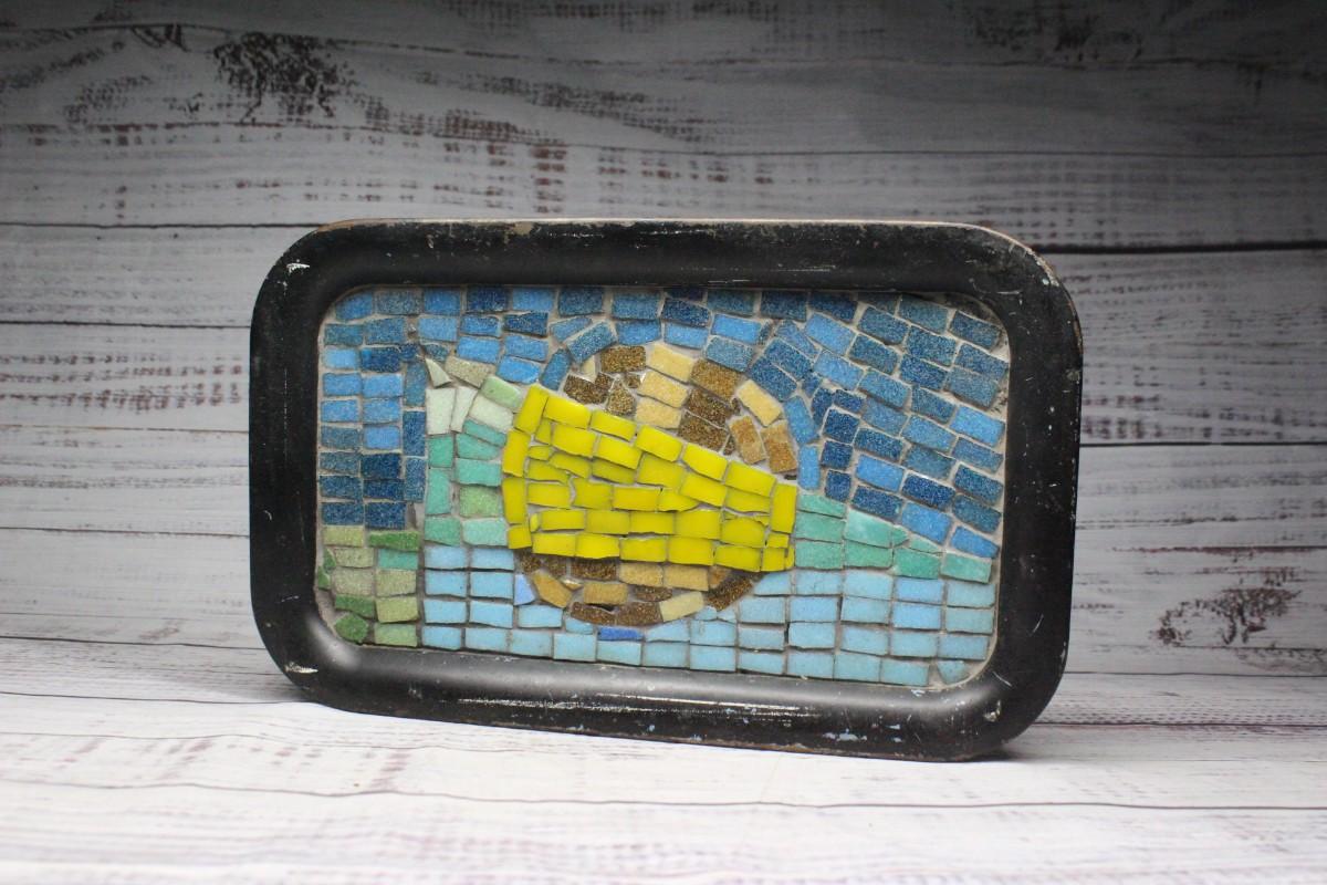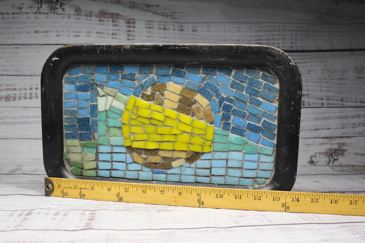 Vintage Mosaic Metal Tray, there's no significant chips or cracks to the tray and is in good condition. Check pictures for more details.