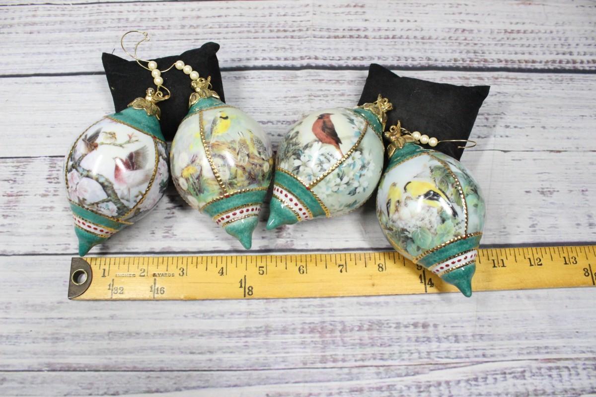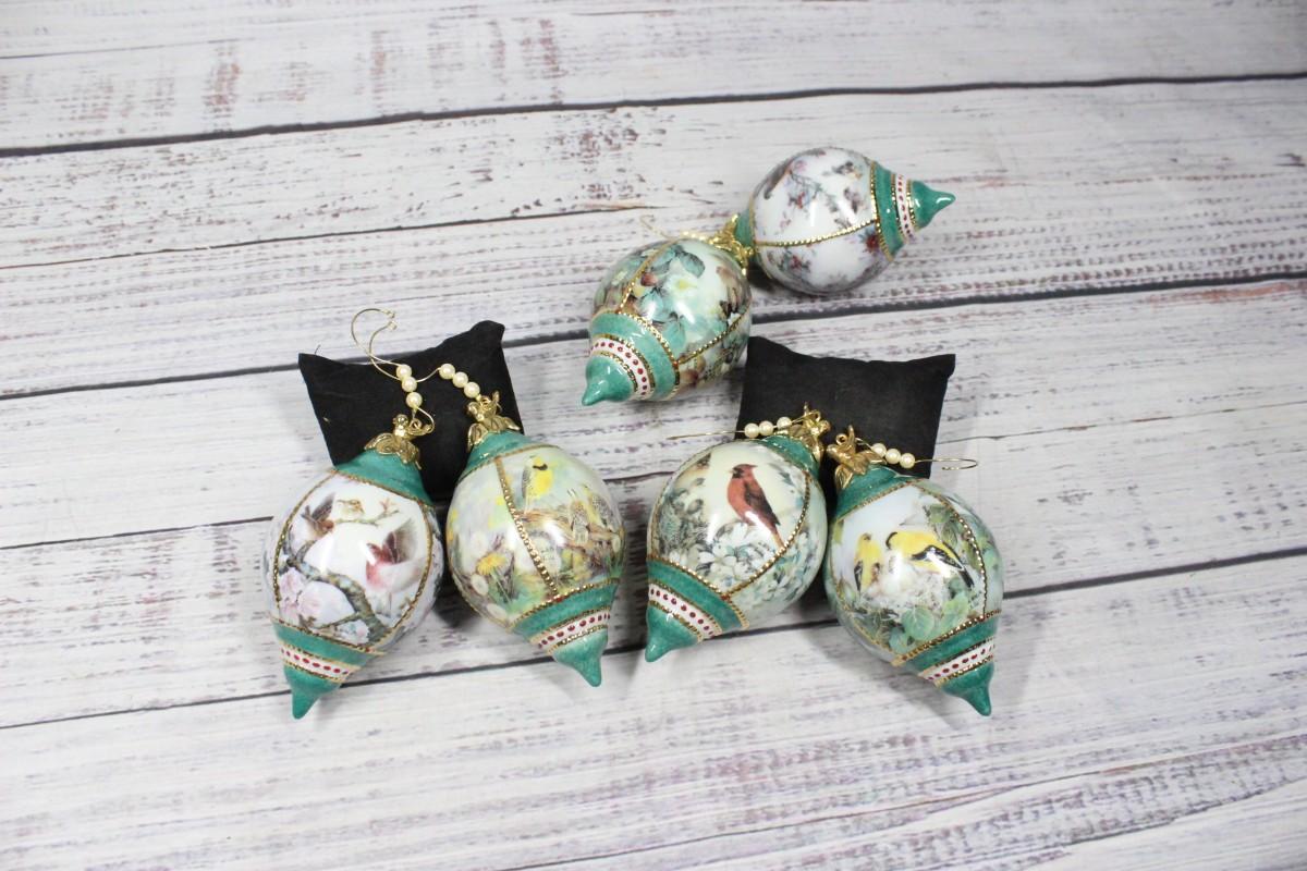 Set of 6 Winter Themed Bird Christmas Ornaments, there's no cracks or chips to any of the pieces and is in good condition. Check pictures for more details.