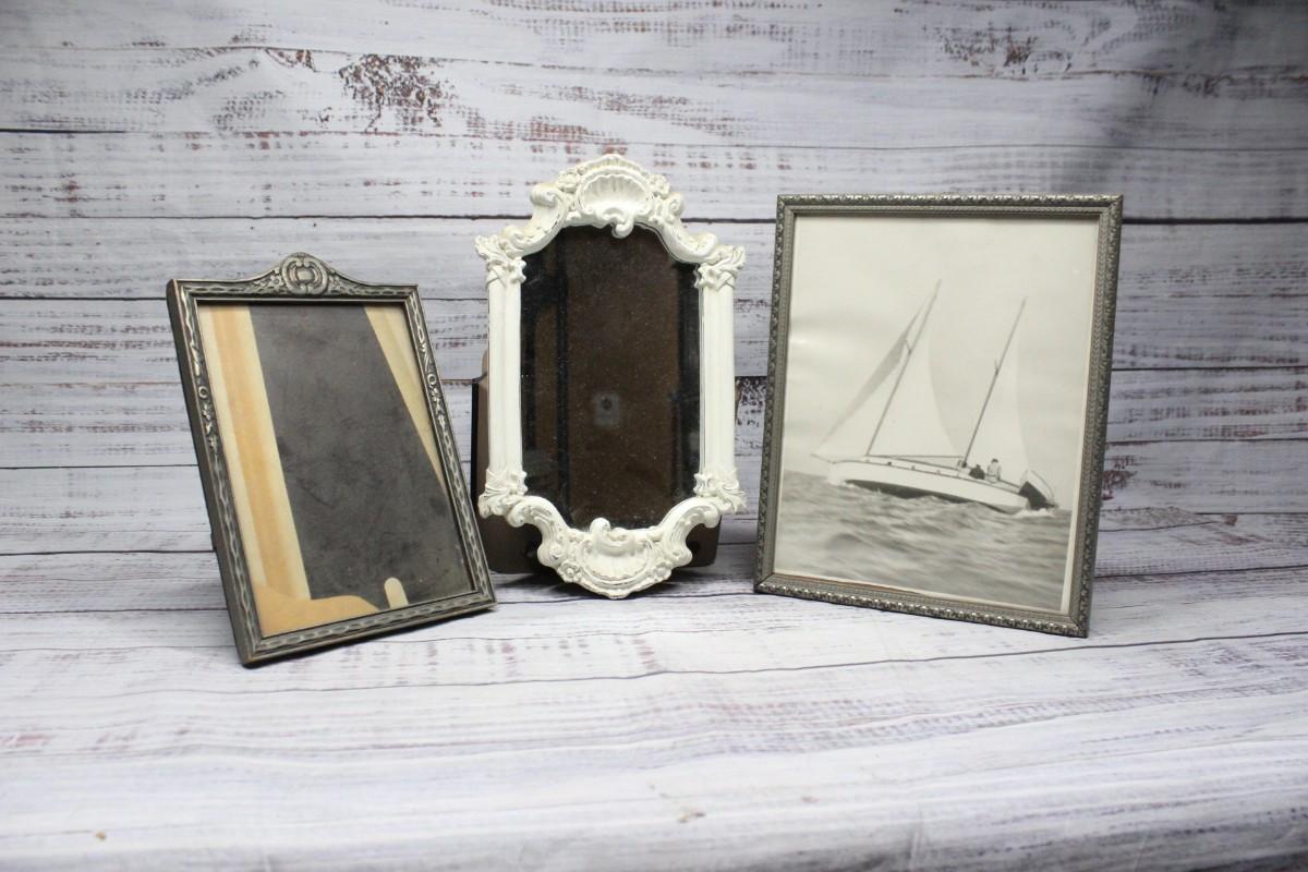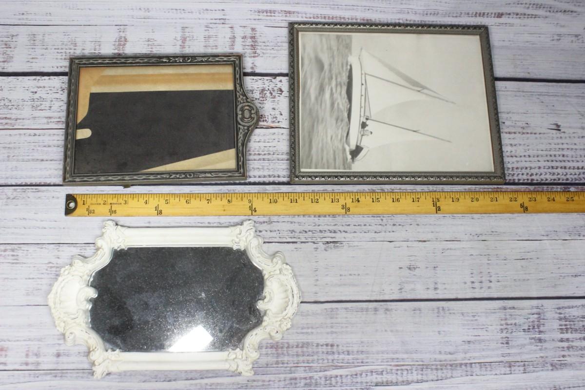 Vintage Lot of Frames and Mirror, there's no significant cracks or chips to any of the pieces and is in good vintage condition. Check pictures for more details, one of the frames comes with a vintage photograph of a sail boat.