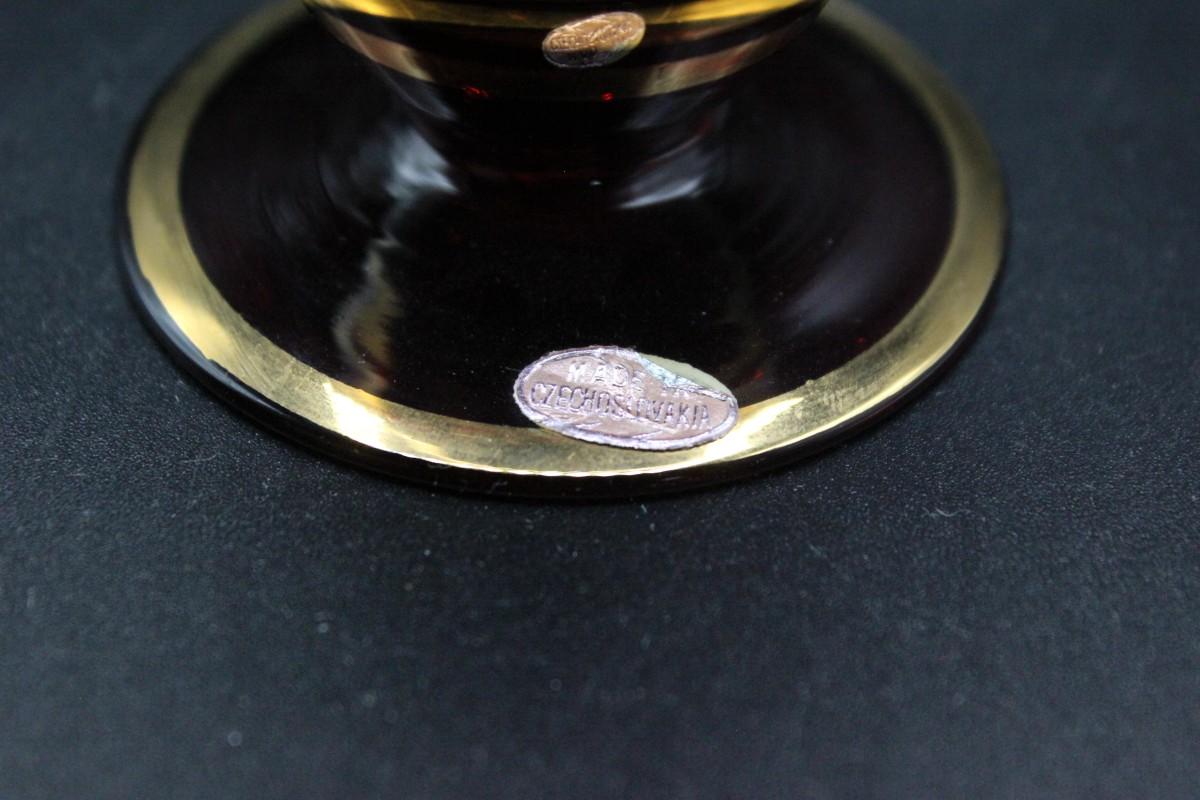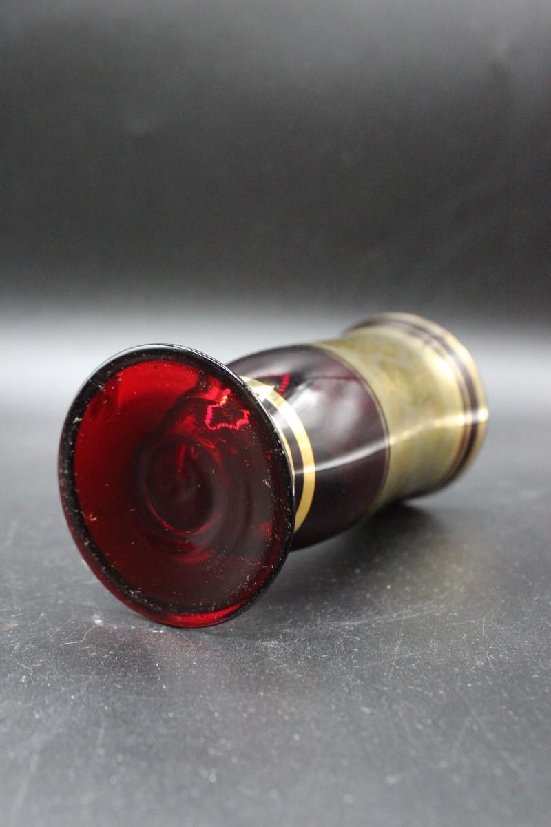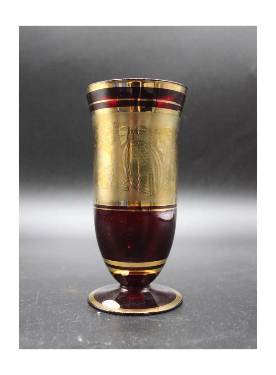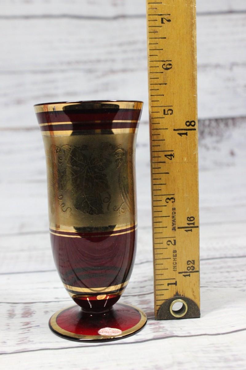 Vintage Bohemian Made in Czechoslovakia Dark Red and Gold Drinking Glass Vase