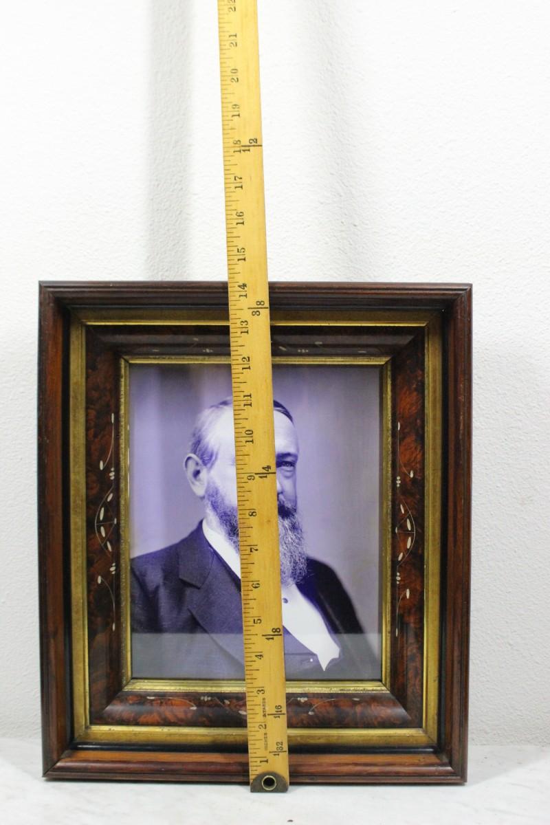 Vintage Framed Photograph Portrait of U.S. President Benjamin Harrison, there are no cracks or chips to the frame and is in good condition. Check pictures for more details and for sizing.