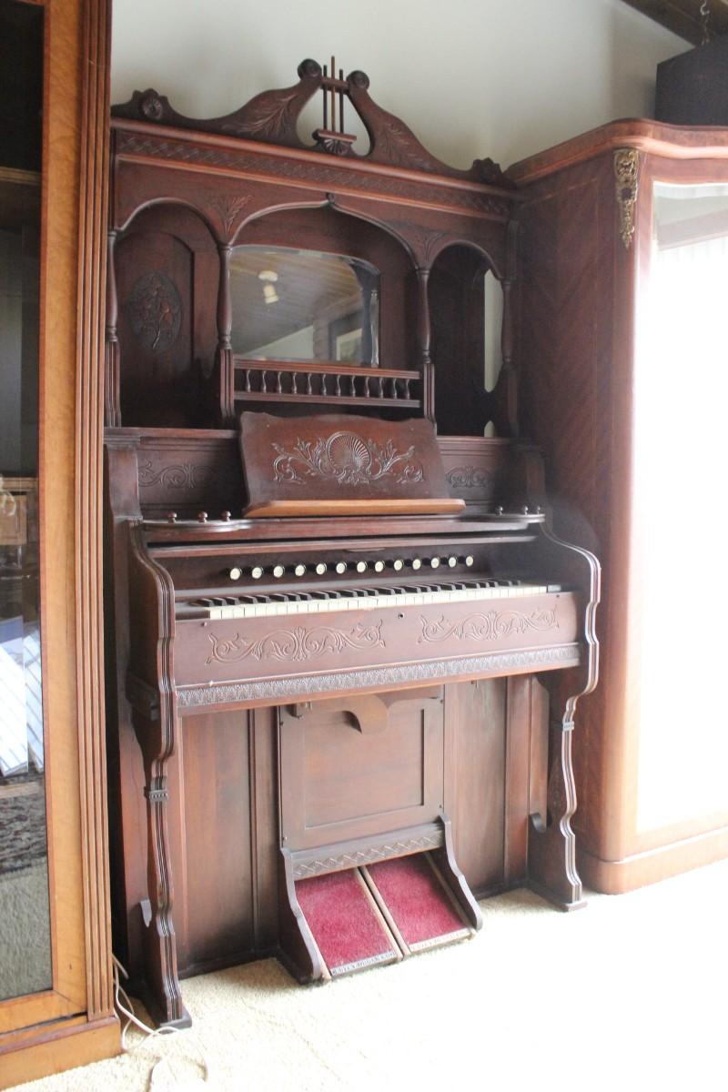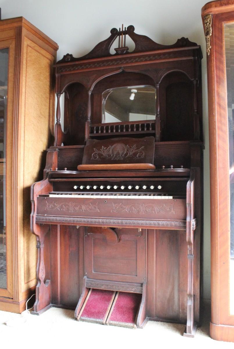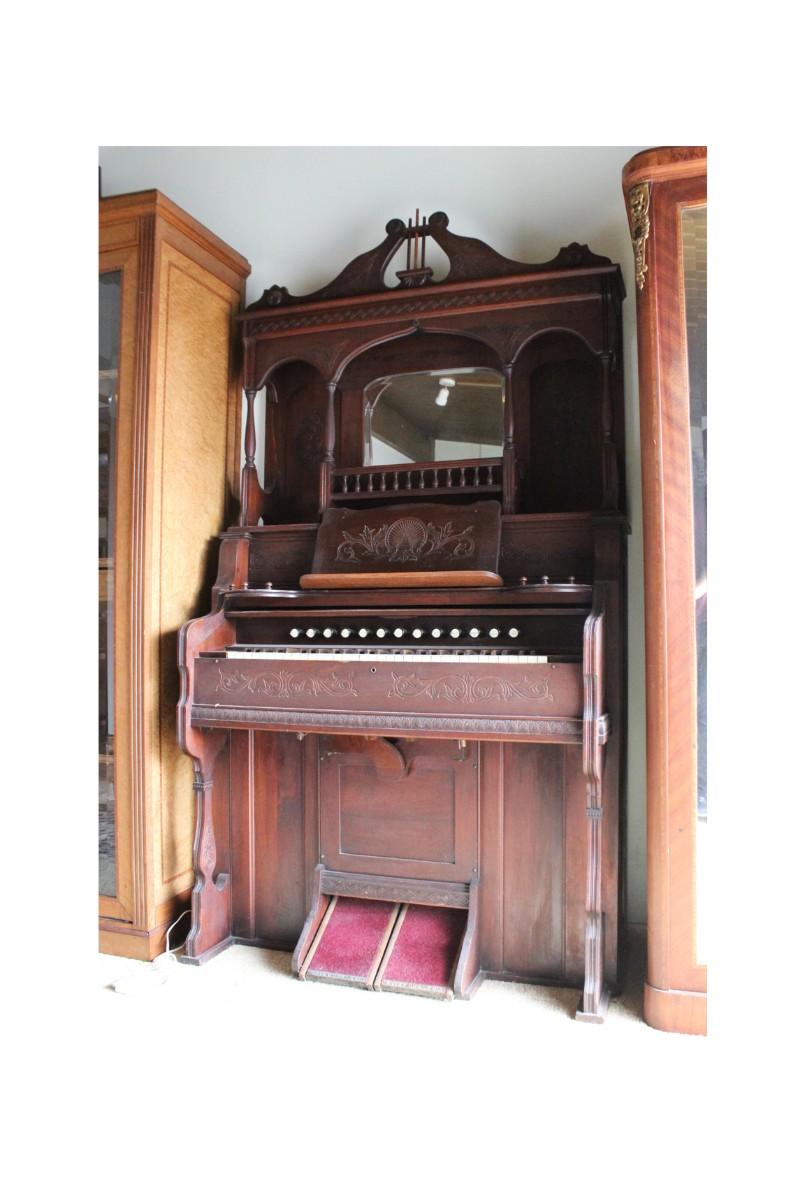 Antique Victorian Carved Wood Mirrored Back Estey Parlor Pump Organ