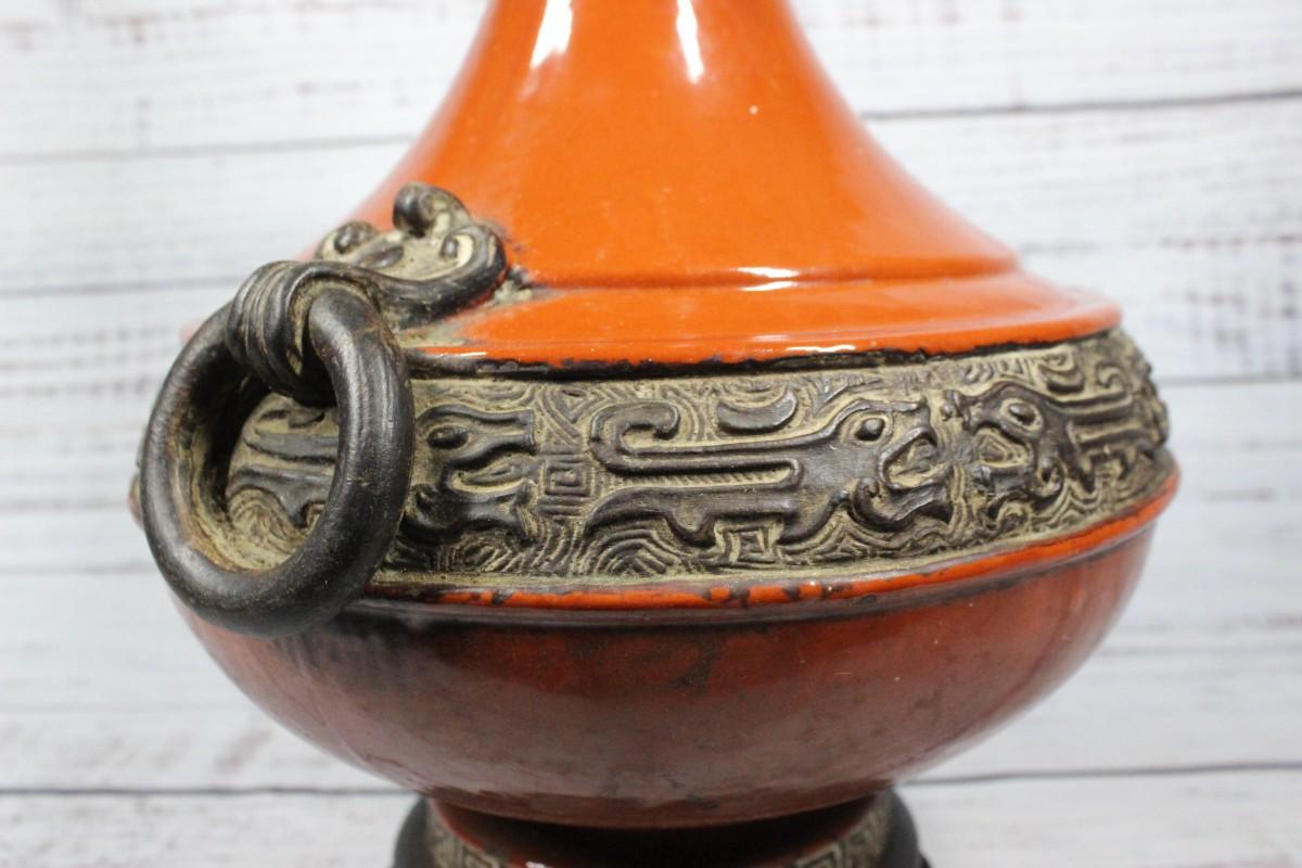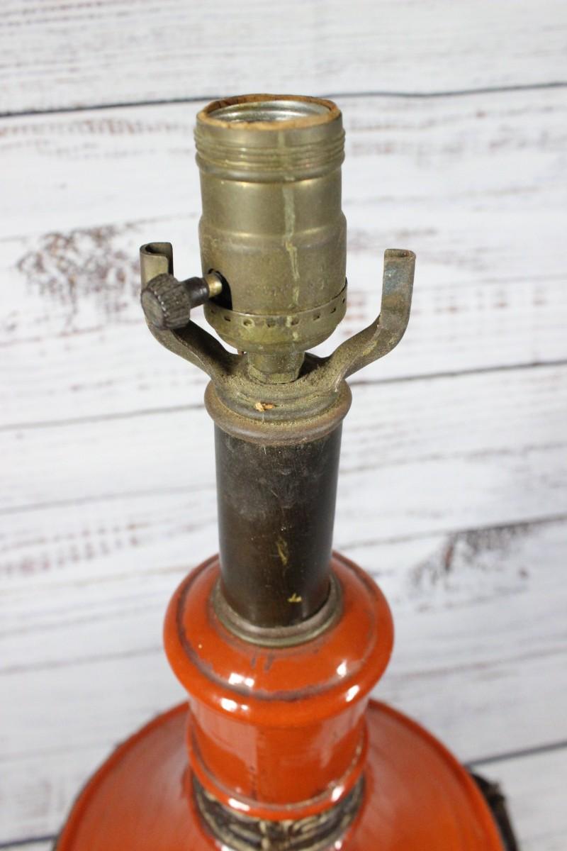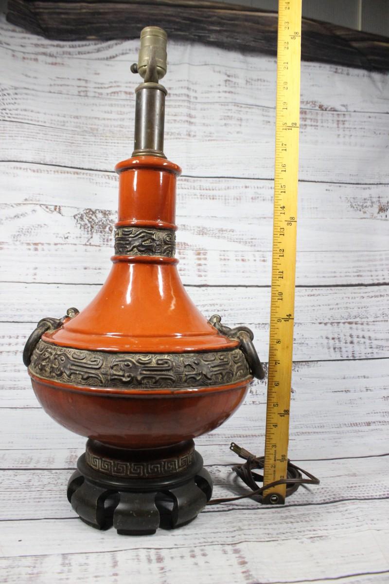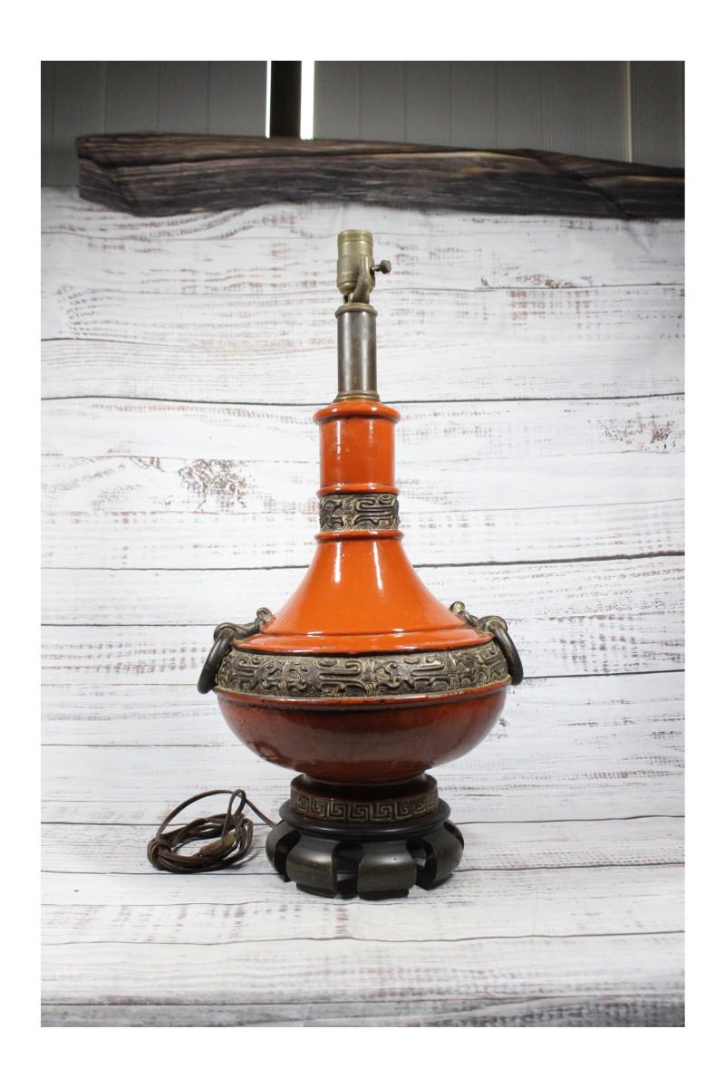 Vintage Mid Century Burnt Orange Ceramic Oriental Dragon Lamp