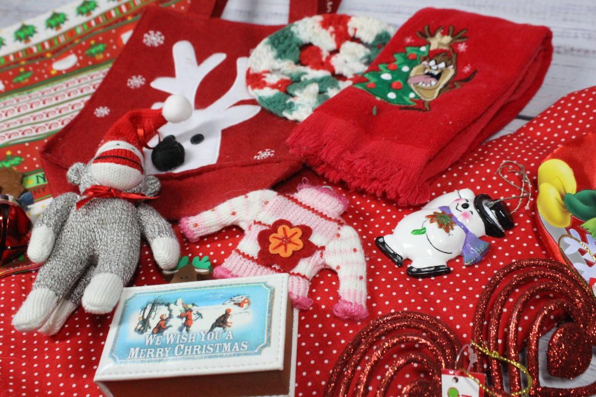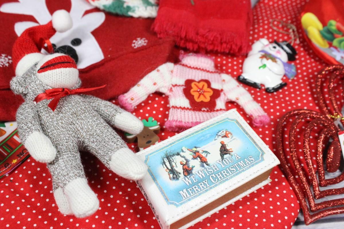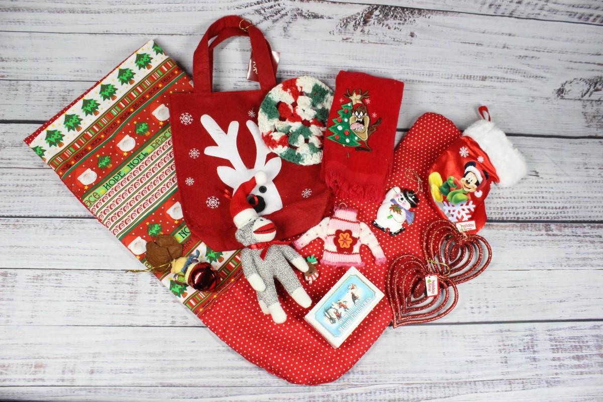 Miscellaneous Christmas Lot, comes with a large sock stocking, tree ornaments, bags and more. Check photos for more details.