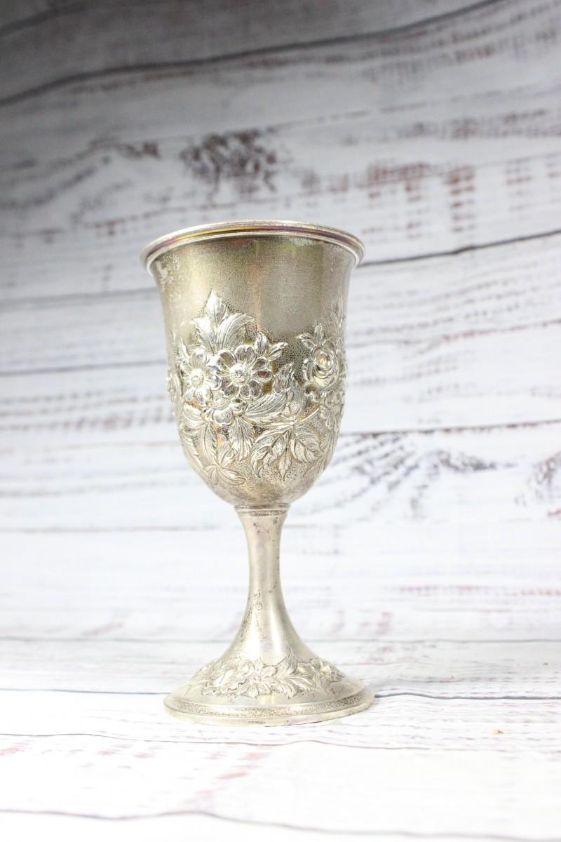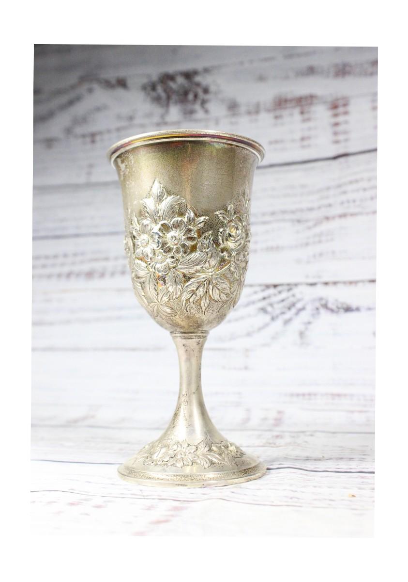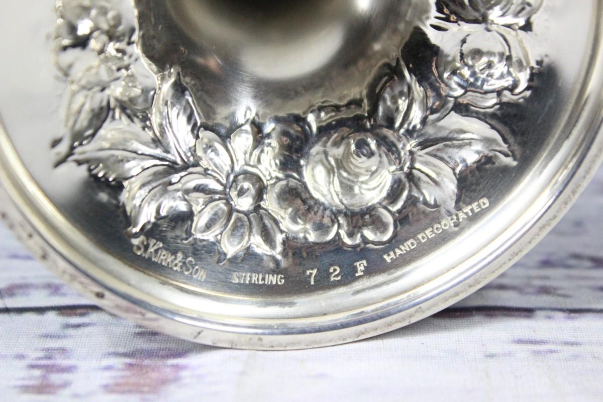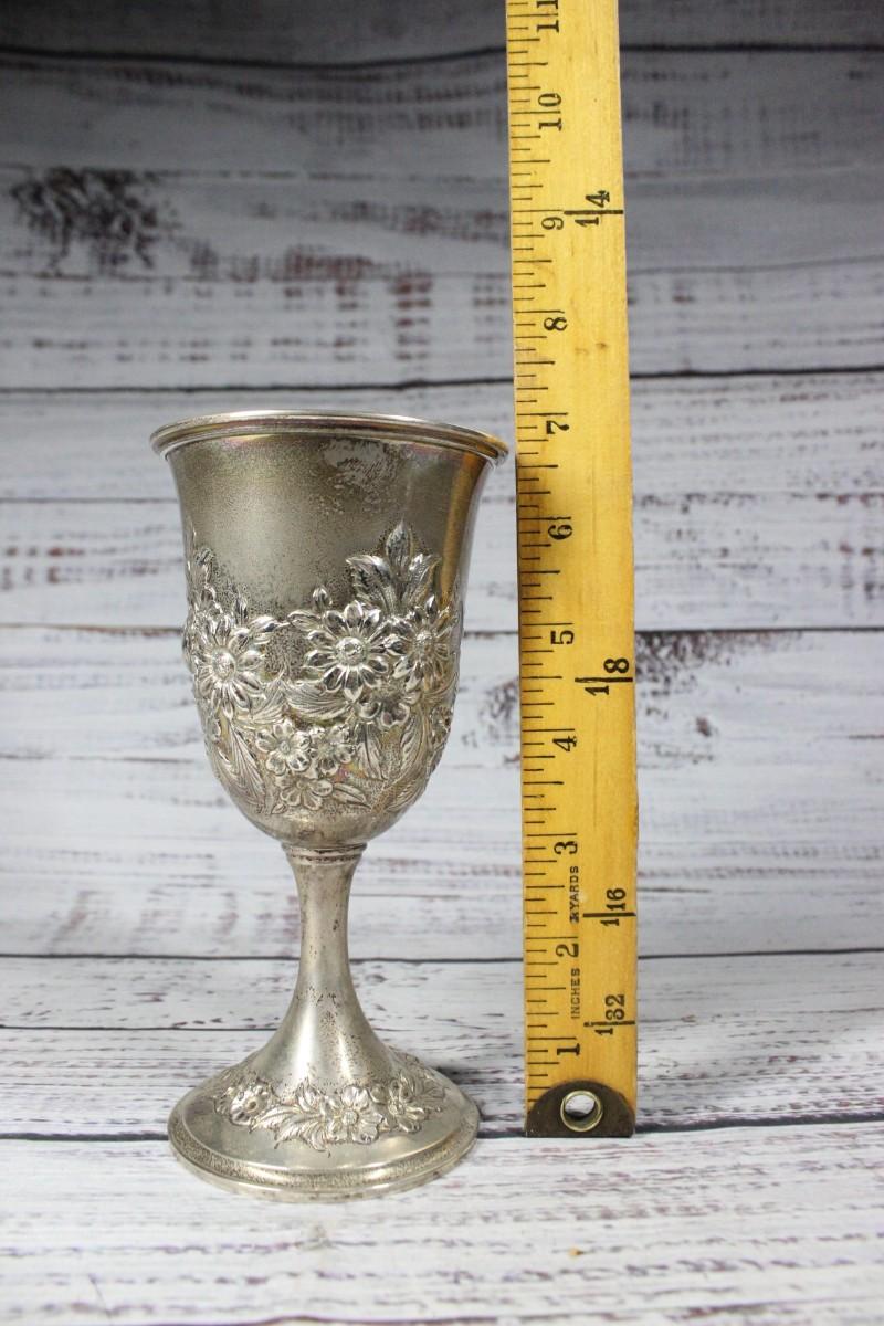 Antique S. Kirk & Son Repousse Sterling Silver Hand Decorated Flower Embossed Wine Goblet #72F