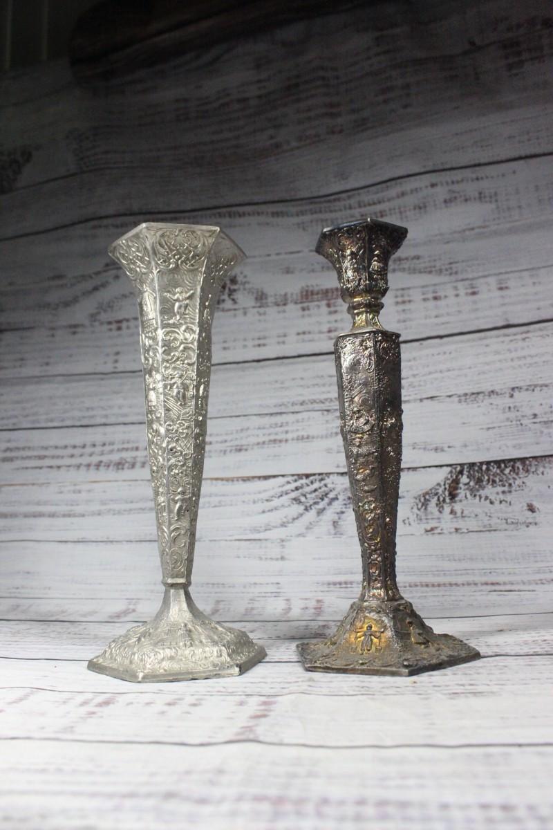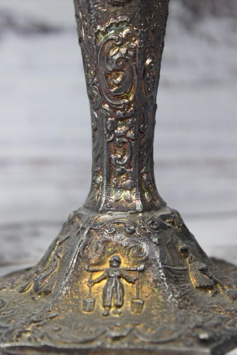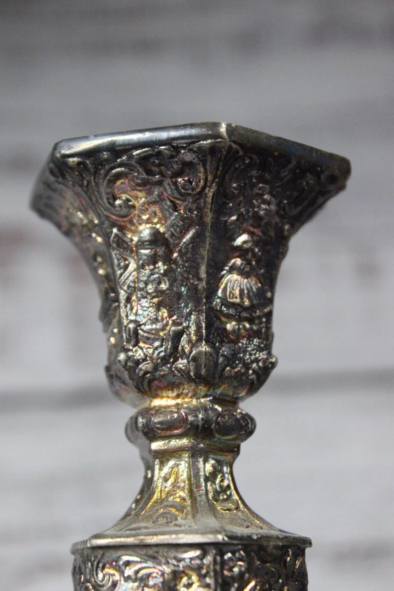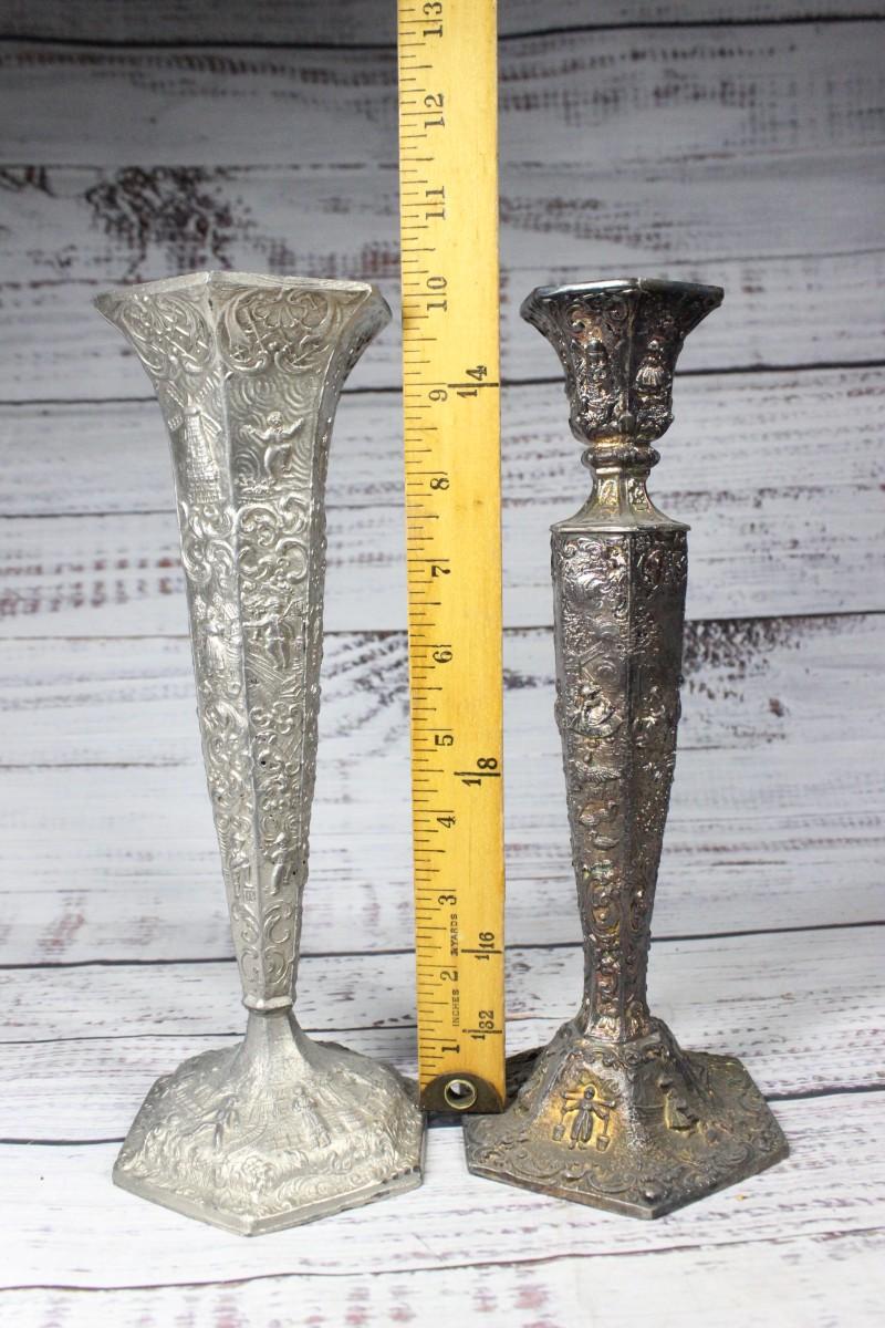 Antique Weidlich Brothers Dutch Silver Plate Ornate Candleholder & Vase