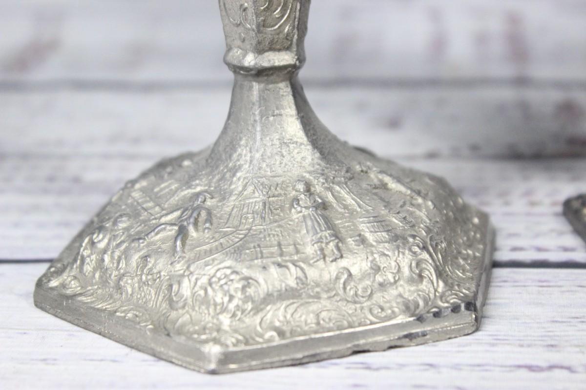 Pair of Antique Weidlich Brothers Dutch Silver Plate Ornate Candleholders, both candleholders are no matching pairs, one is slightly darker than the other. There is no damage to any of the candleholders and is in good vintage condition, check pictures for more details and for sizing.