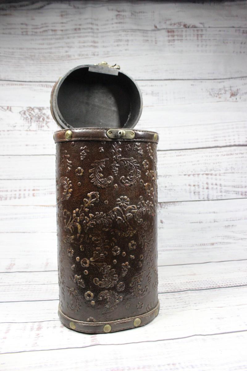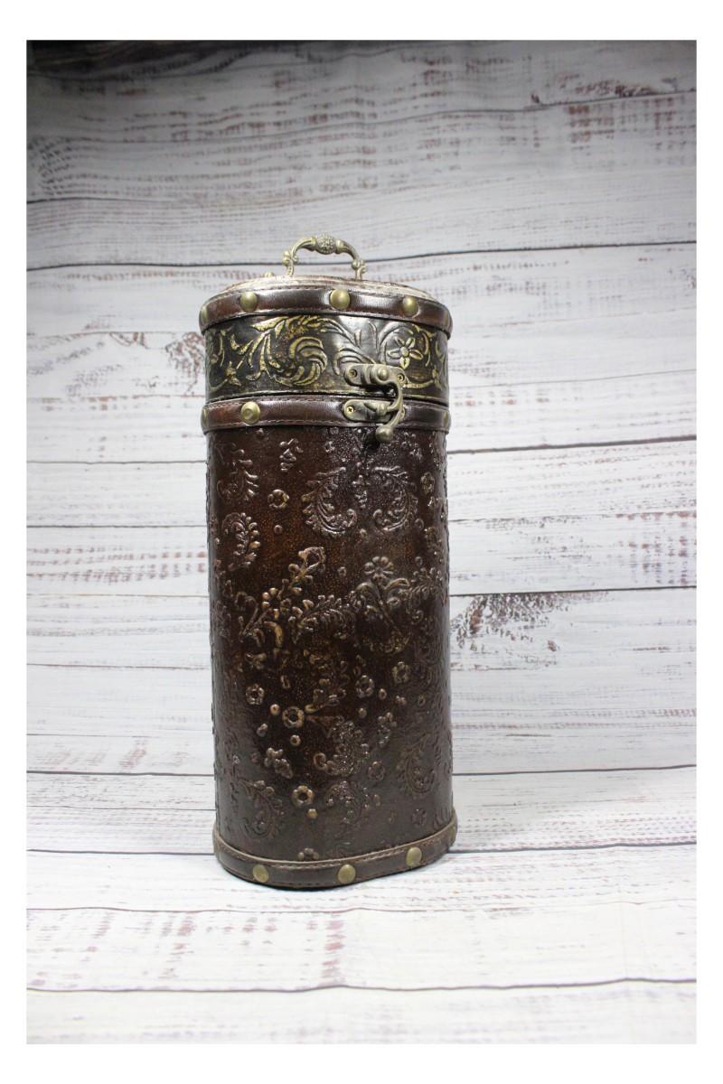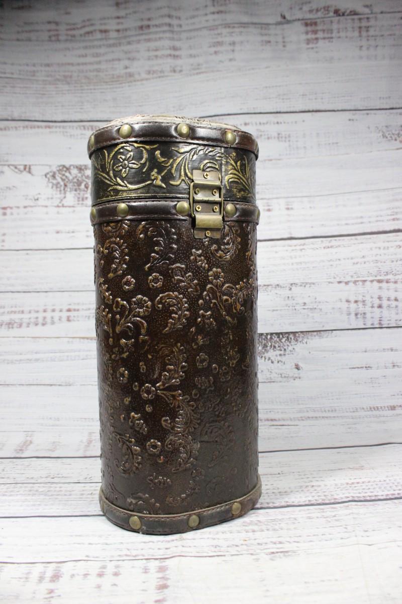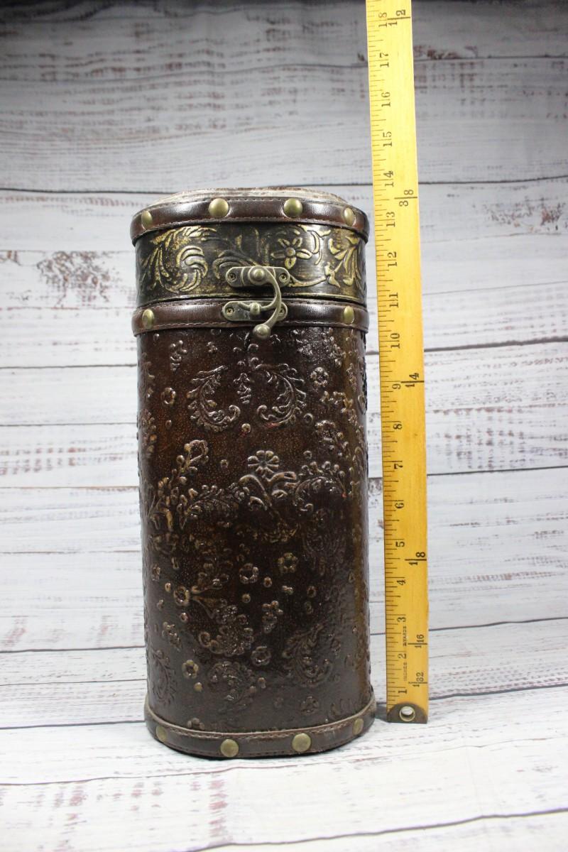 Vintage Stamped Leather Metal Latch Wine Bottle Storage Case