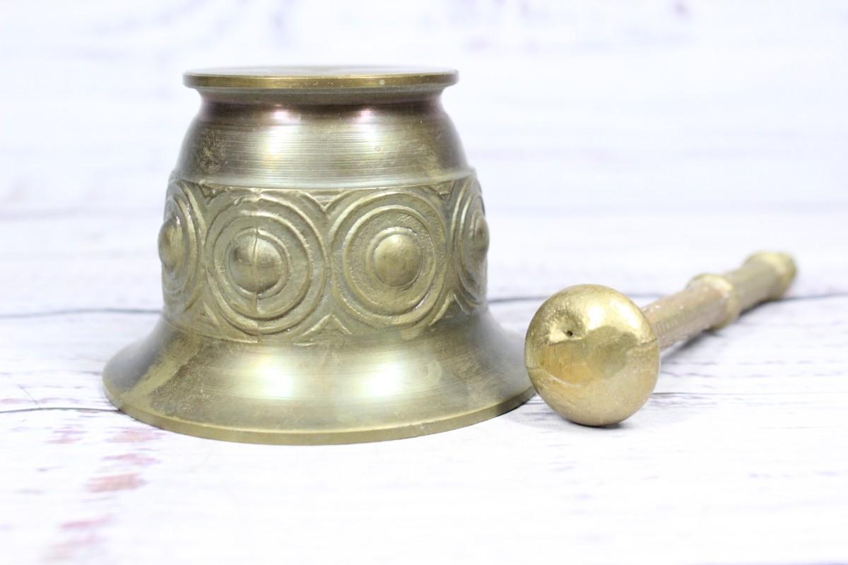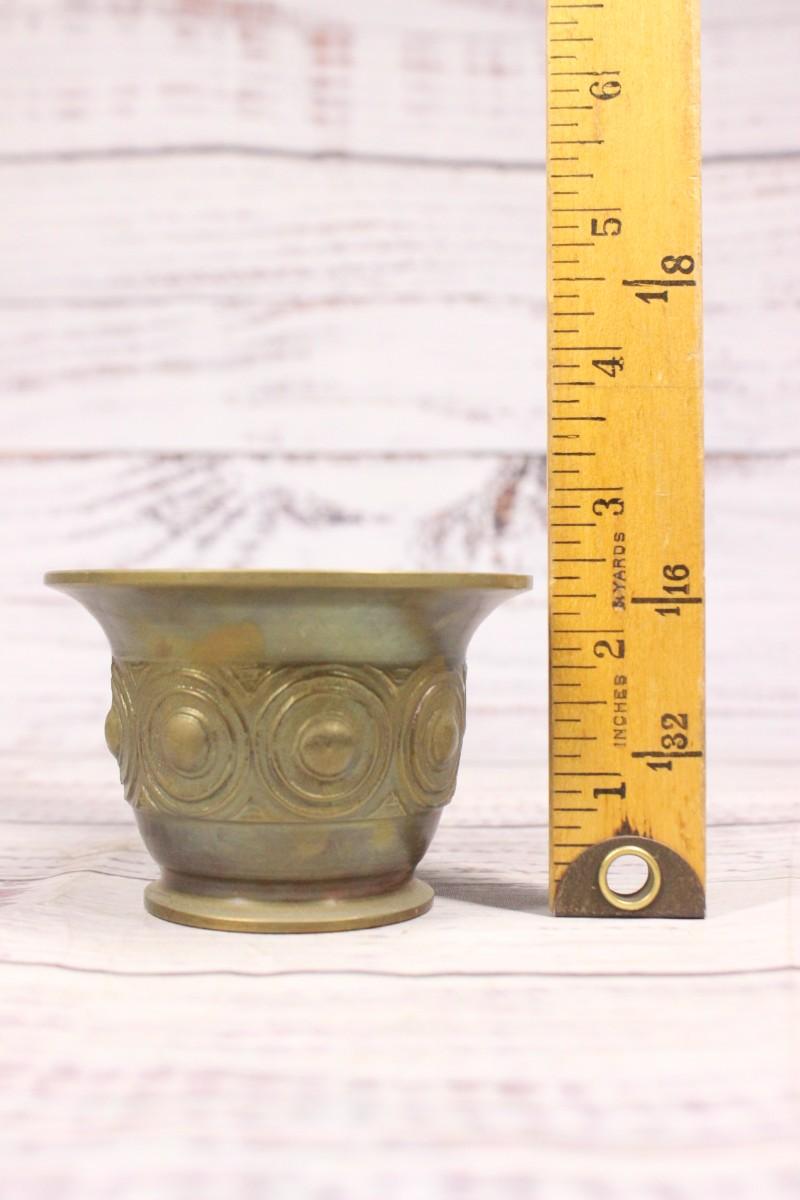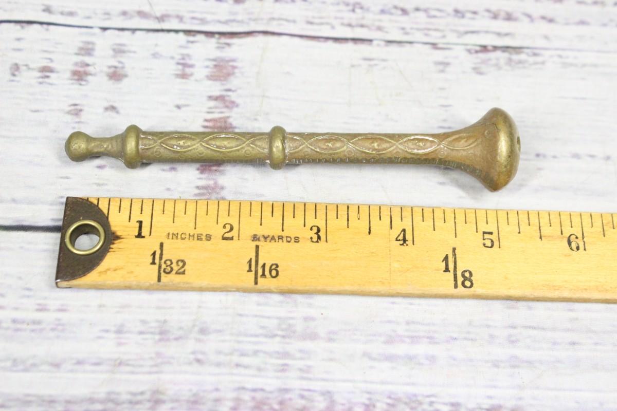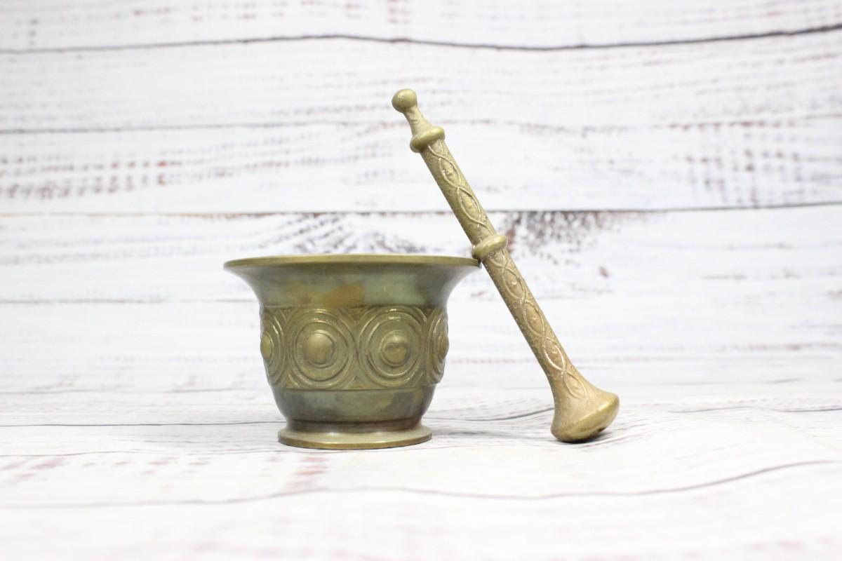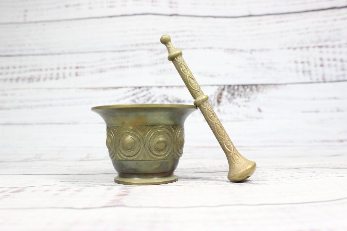 Vintage Bronze Mortar & Pestle, there's no significant dents or damage to the mortar or pestle and is in good vintage condition. Check pictures for more details and for sizing.