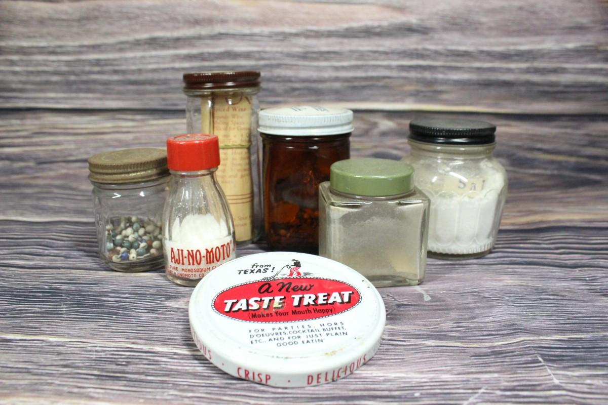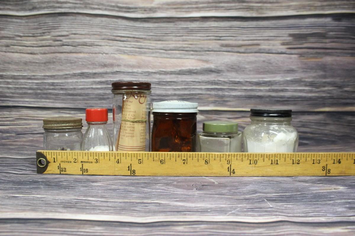 Vintage Lot of Small Spice and Craft Jars, there's no significant cracks or chips to the jars and is in good vintage condition. Check pictures for more details and for sizing.