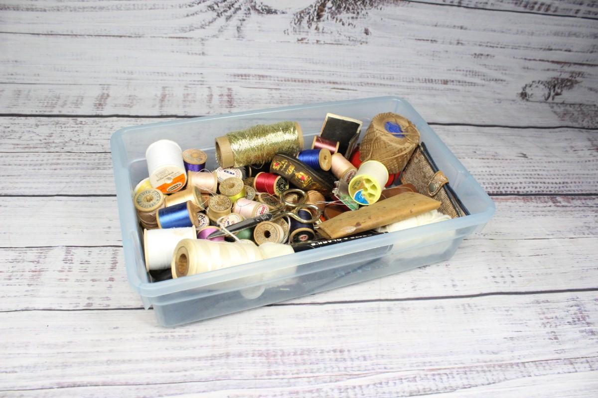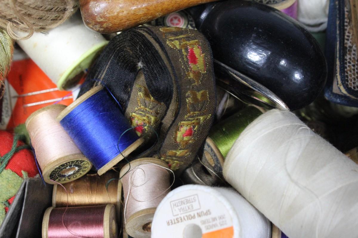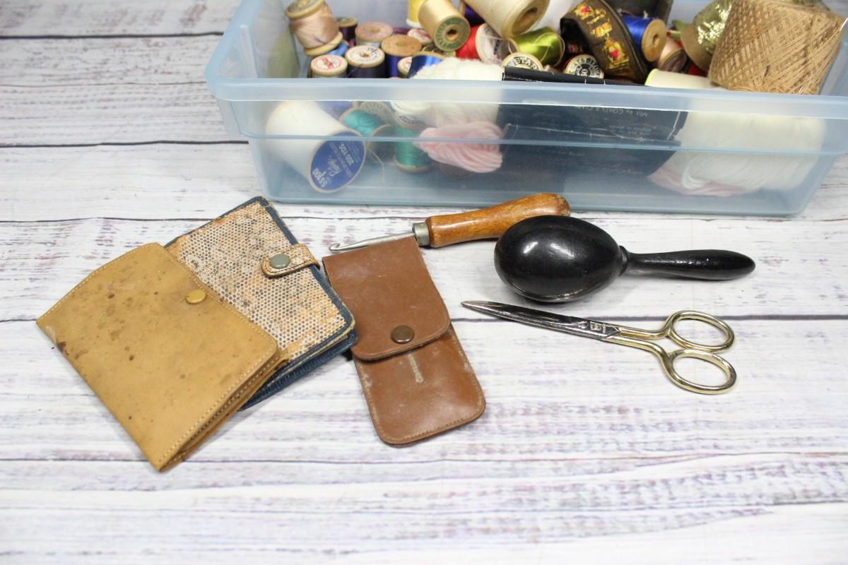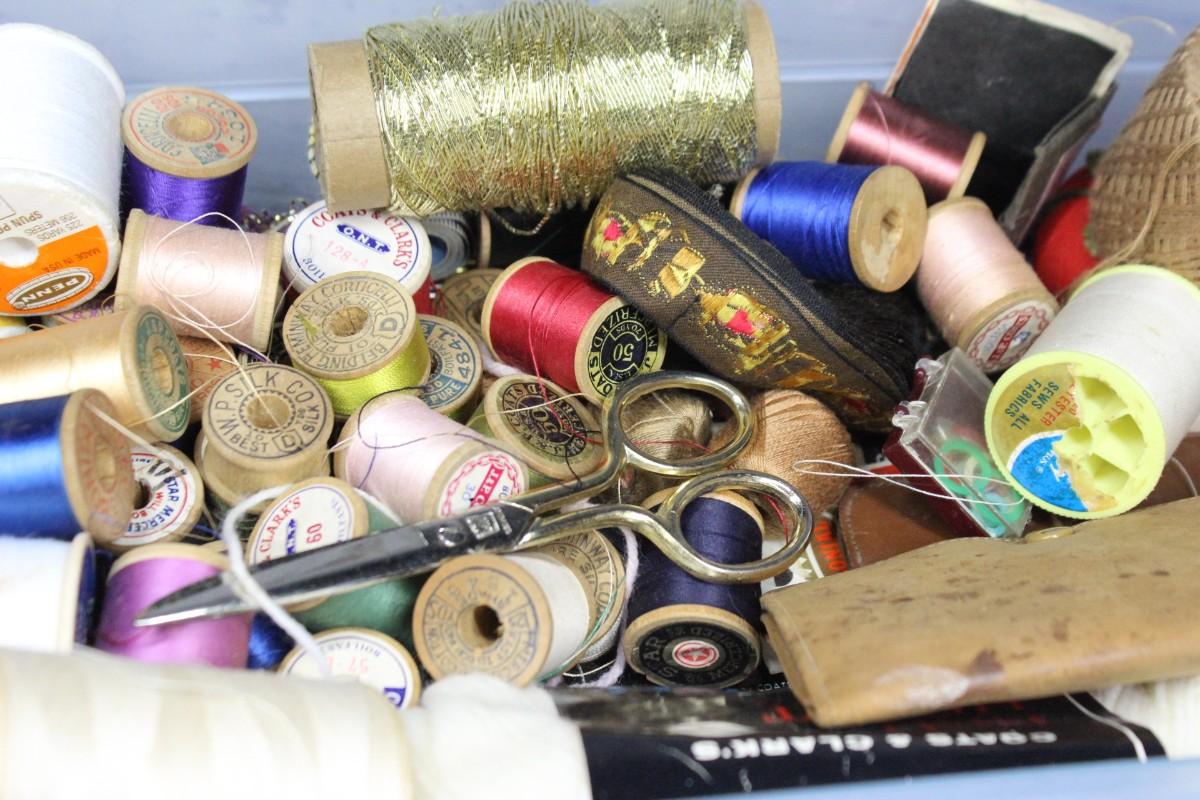 Vintage Lot of Crafting Yarn, Spools, Needles & More