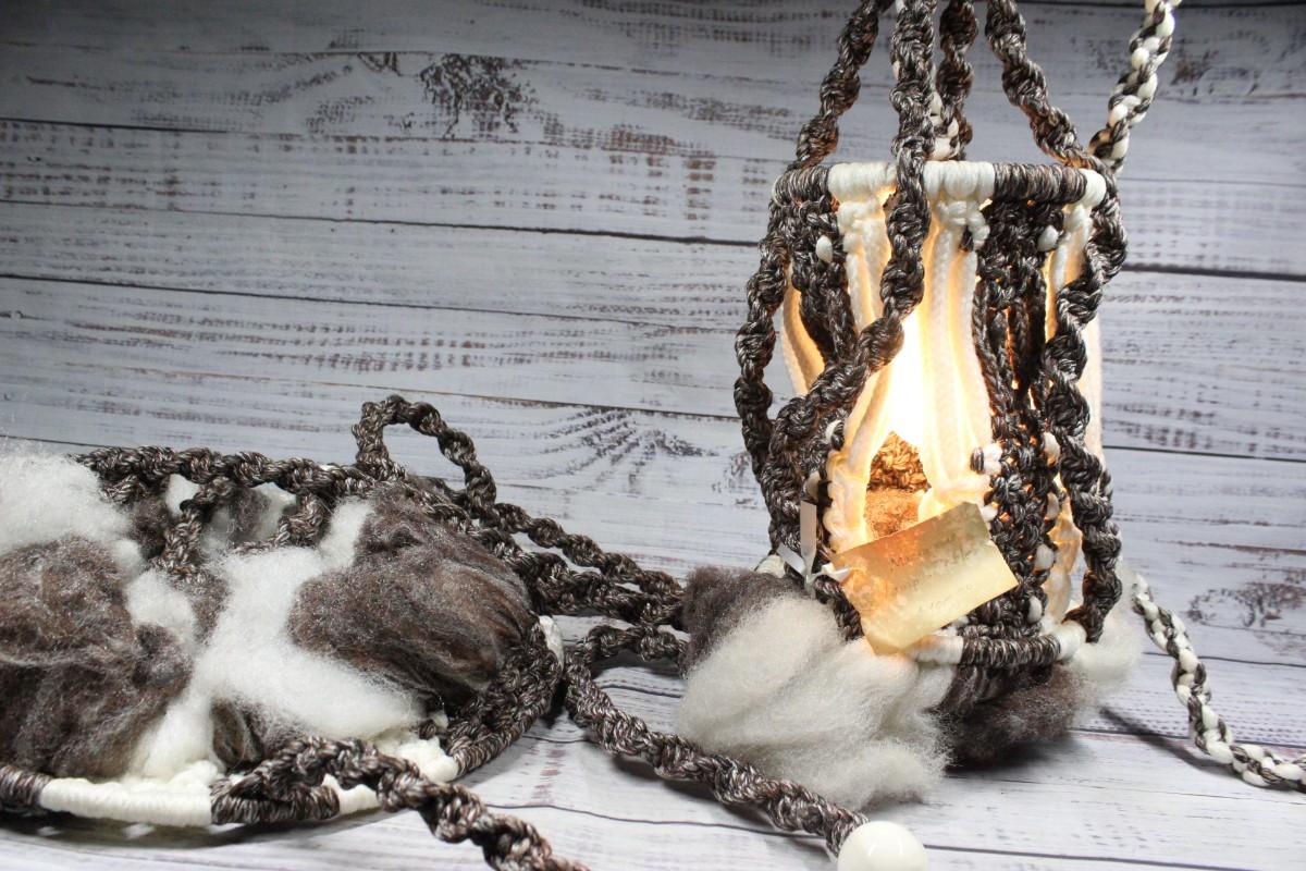 Long Vintage Hangable Macrame Lamp, there's no ripping or tearing to the lamp and is in good condition. Check pictures for more details, has been tested and works perfectly.