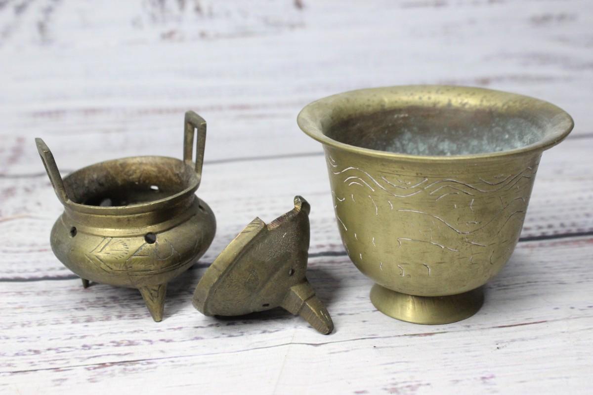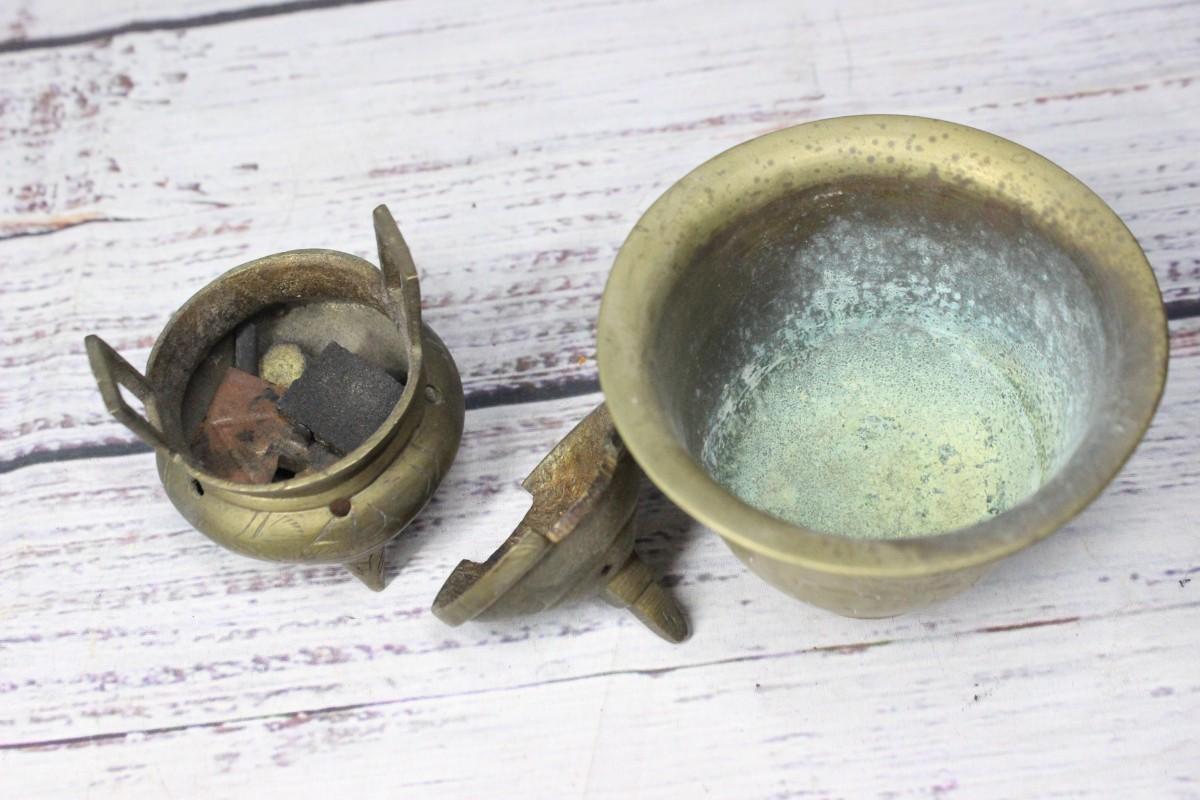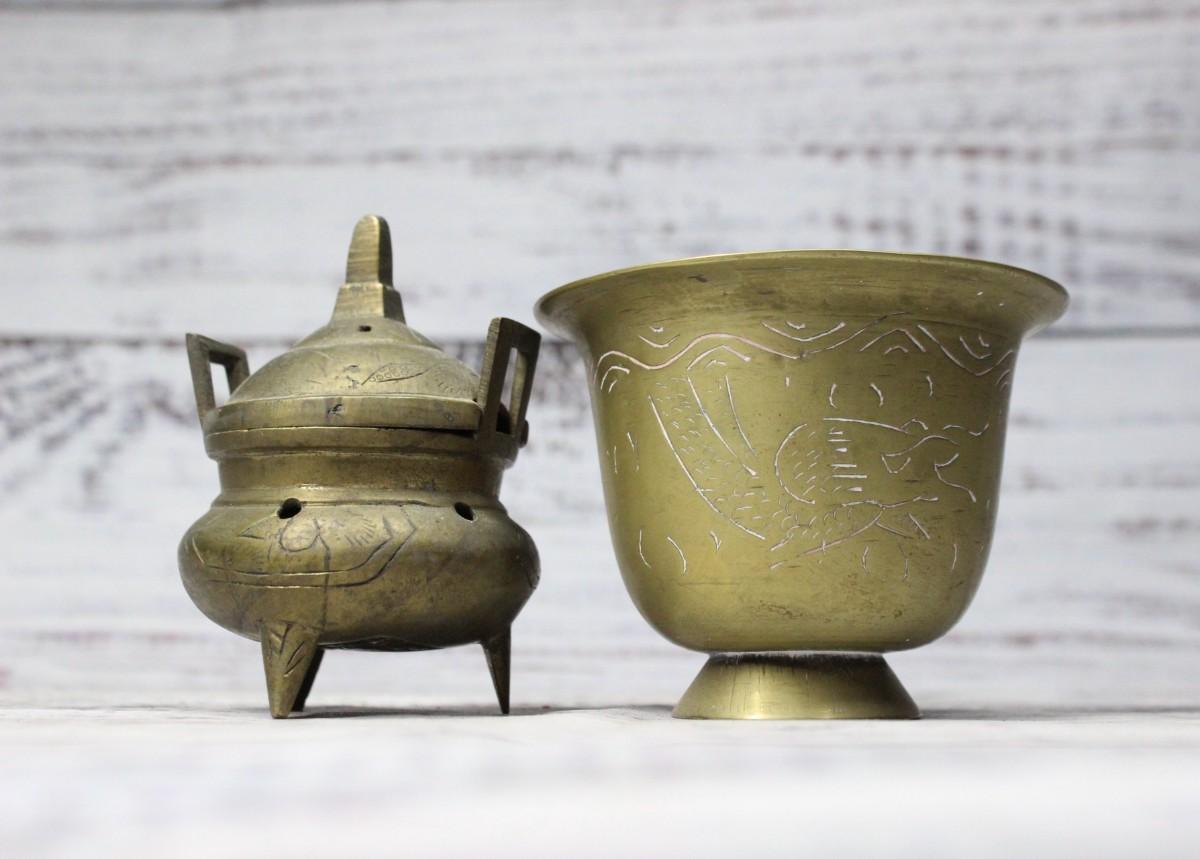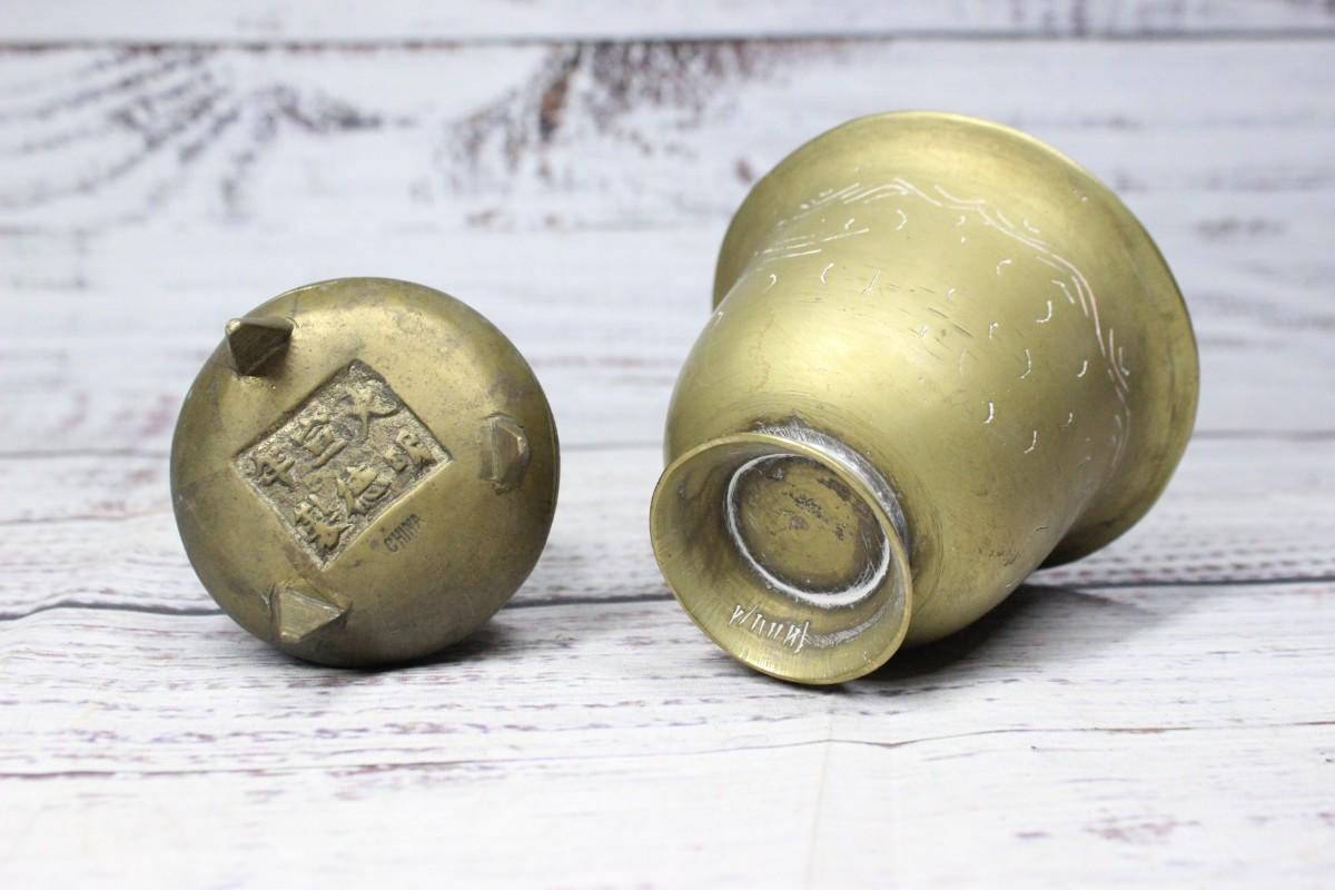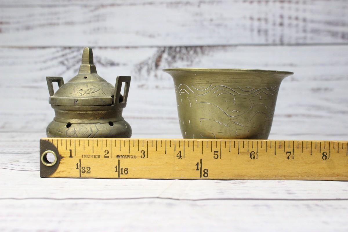 Vintage Brass Chinese Incense Burner and Mortar Cup