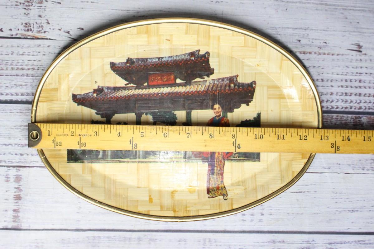 Vintage Bamboo Souvenir Tray, there are no cracks or chips to the piece and is in good condition. Check pictures for more details and for sizing.